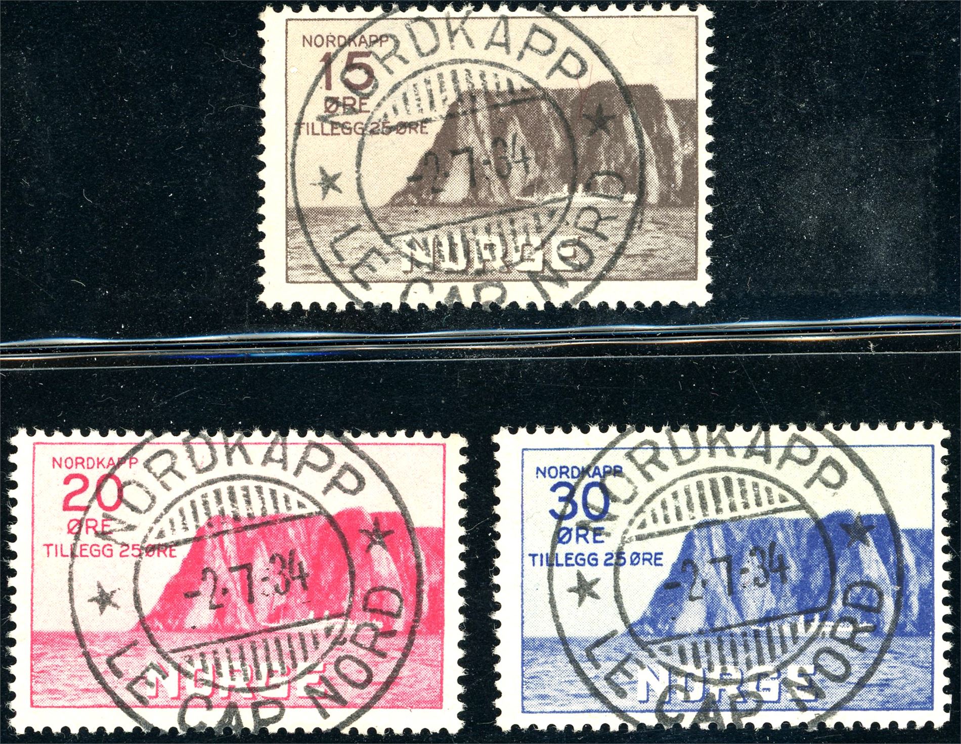 181/83. Nordkapp I i komplett serie, alle pent stemplet "Nordkapp Le Cap Nord 2.7.34".