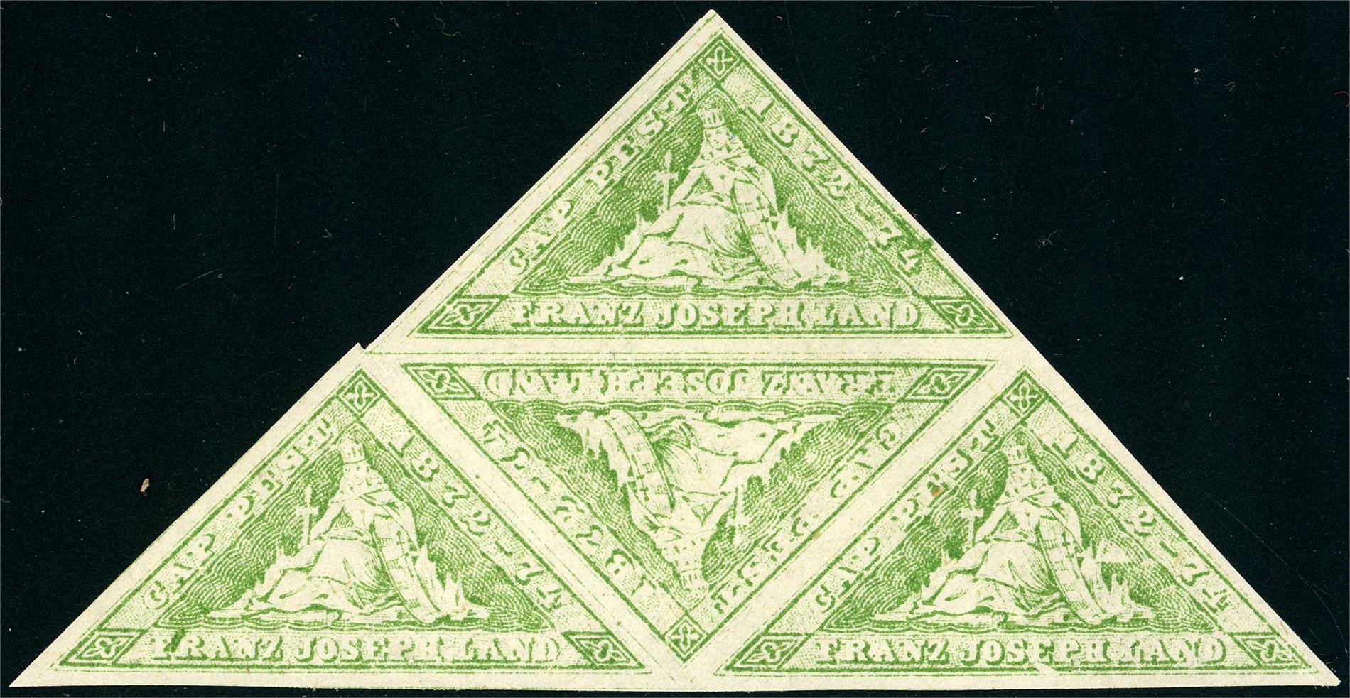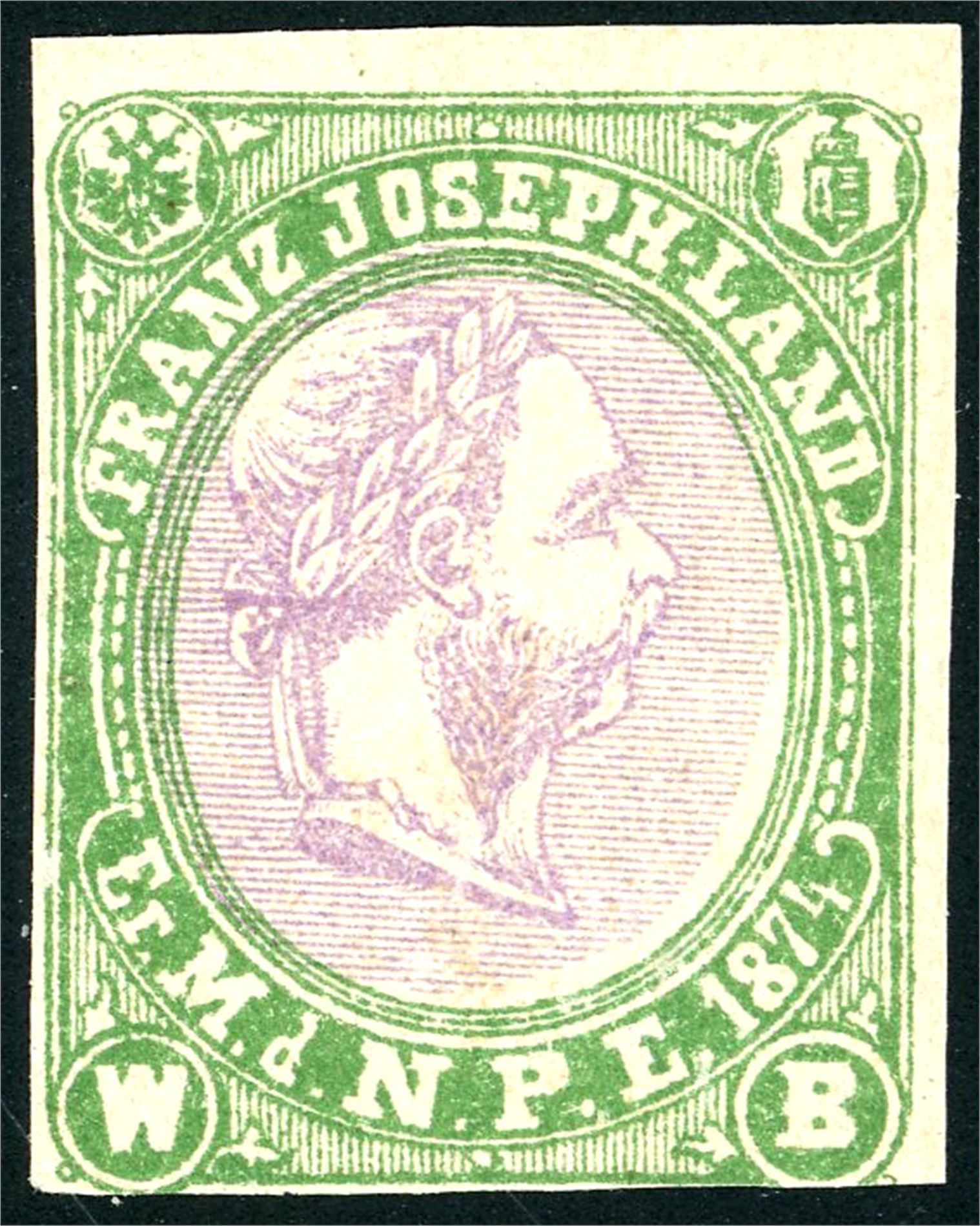 Franz Joseph Land. One green and one red "Stamps" and 4 orange and 4 green. Also to "26.Sept.-Cap Budapest-1874".