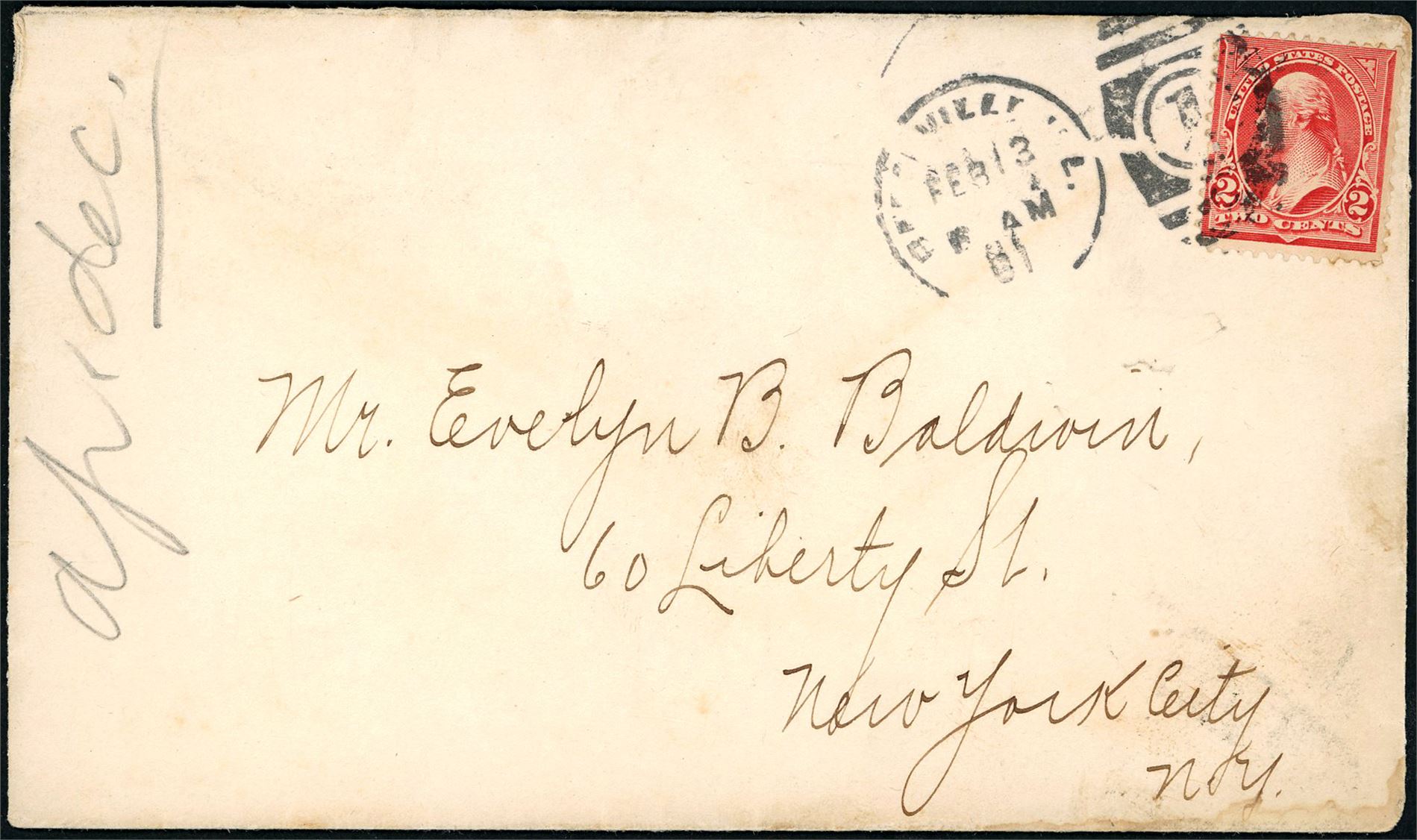 Baldwin Zieger Expedition 1901-02. Two envelopes, both sent to Evelyn B Baldwin in New York (Feb and Mar 1901), who was the commander of the Wellman Expedition in 1898-99. (5245112)
