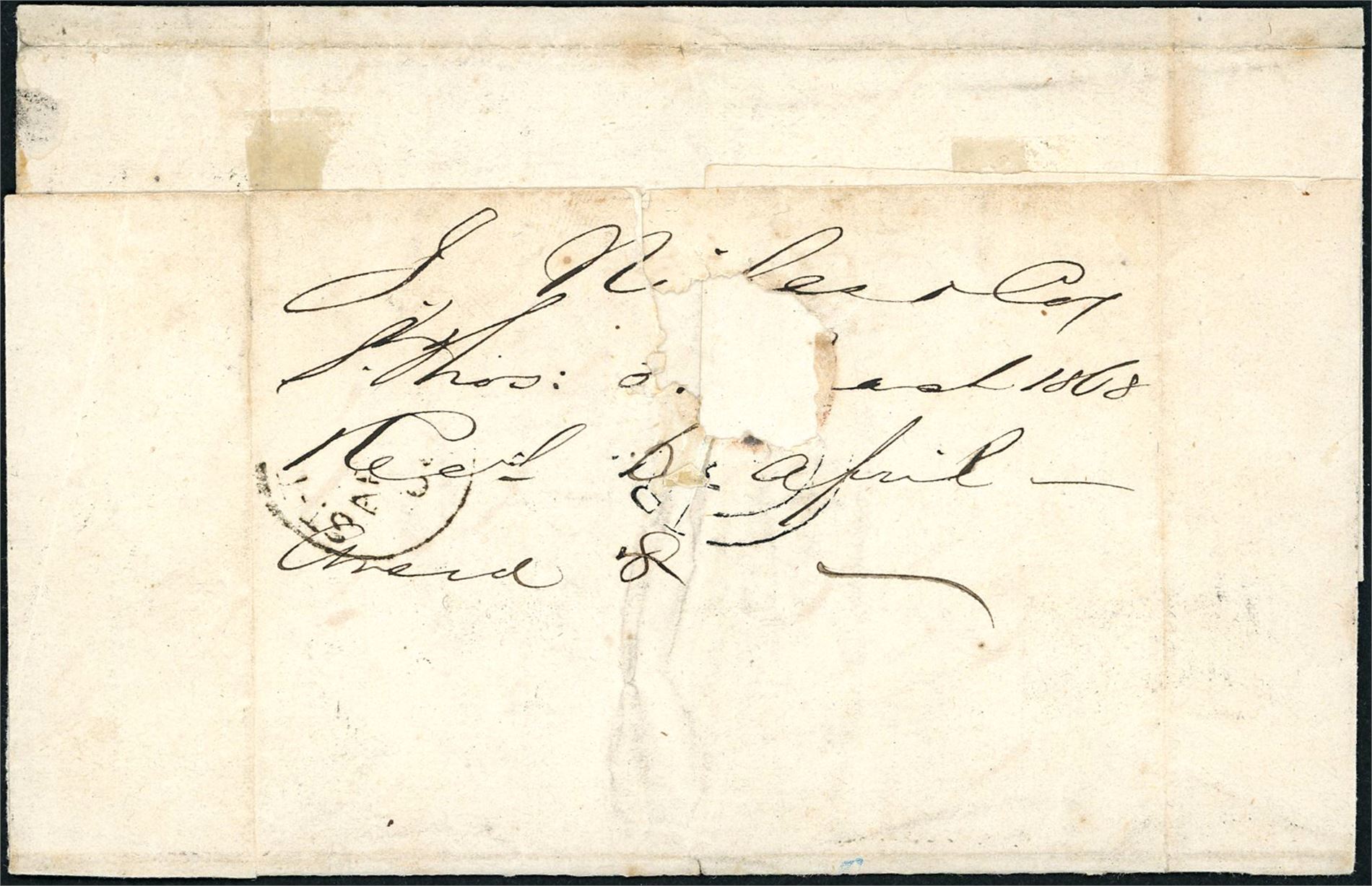 Z 10/95. DWI. 4 d orange (pl.9) on entire, cancelled "C 51" and sent to Trinidad. Part of two cds at reverse /St Thomas B Ap ? 68" and "Trinidad 68". The stamps with a minor fault in lower right corner.