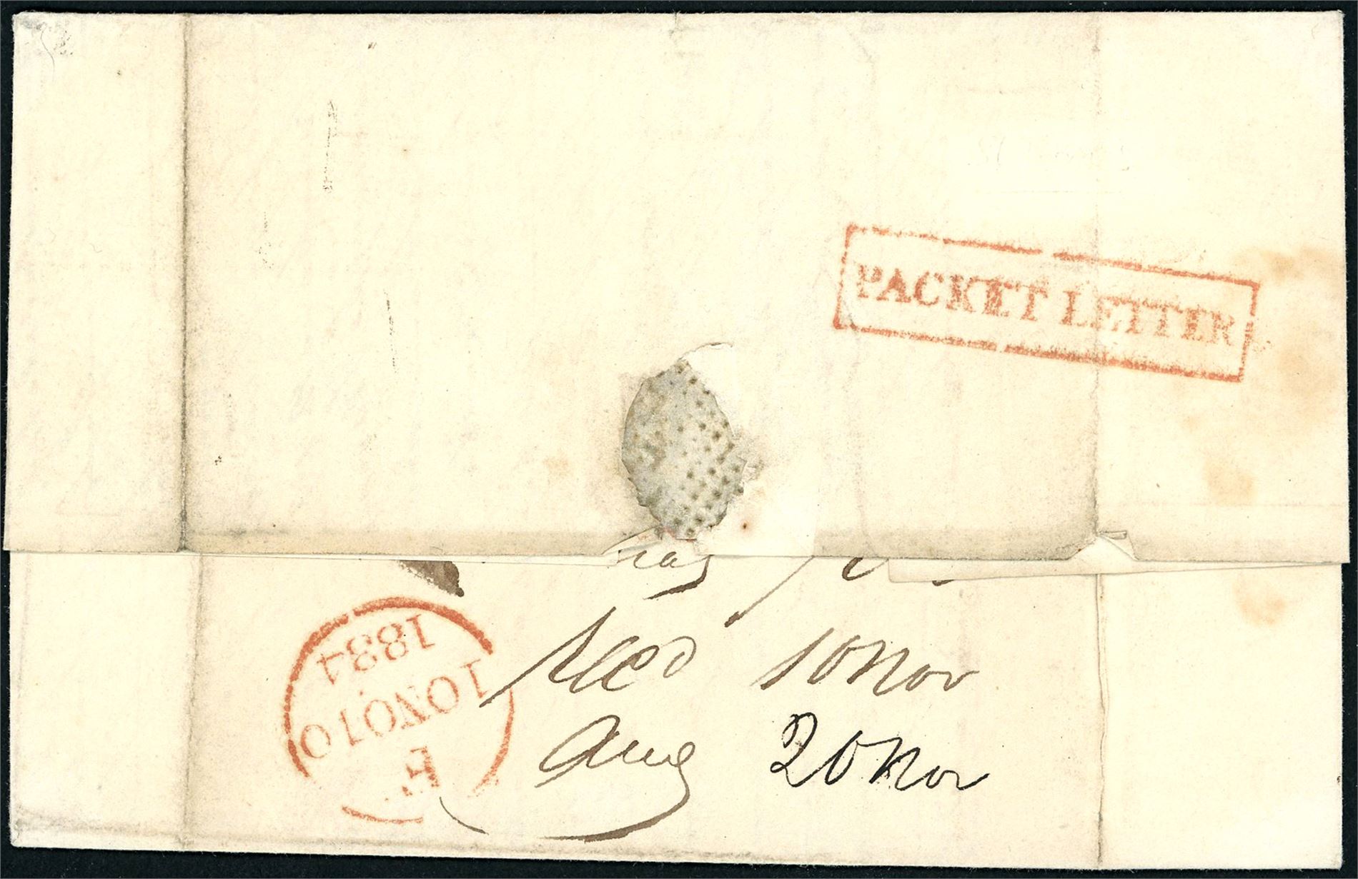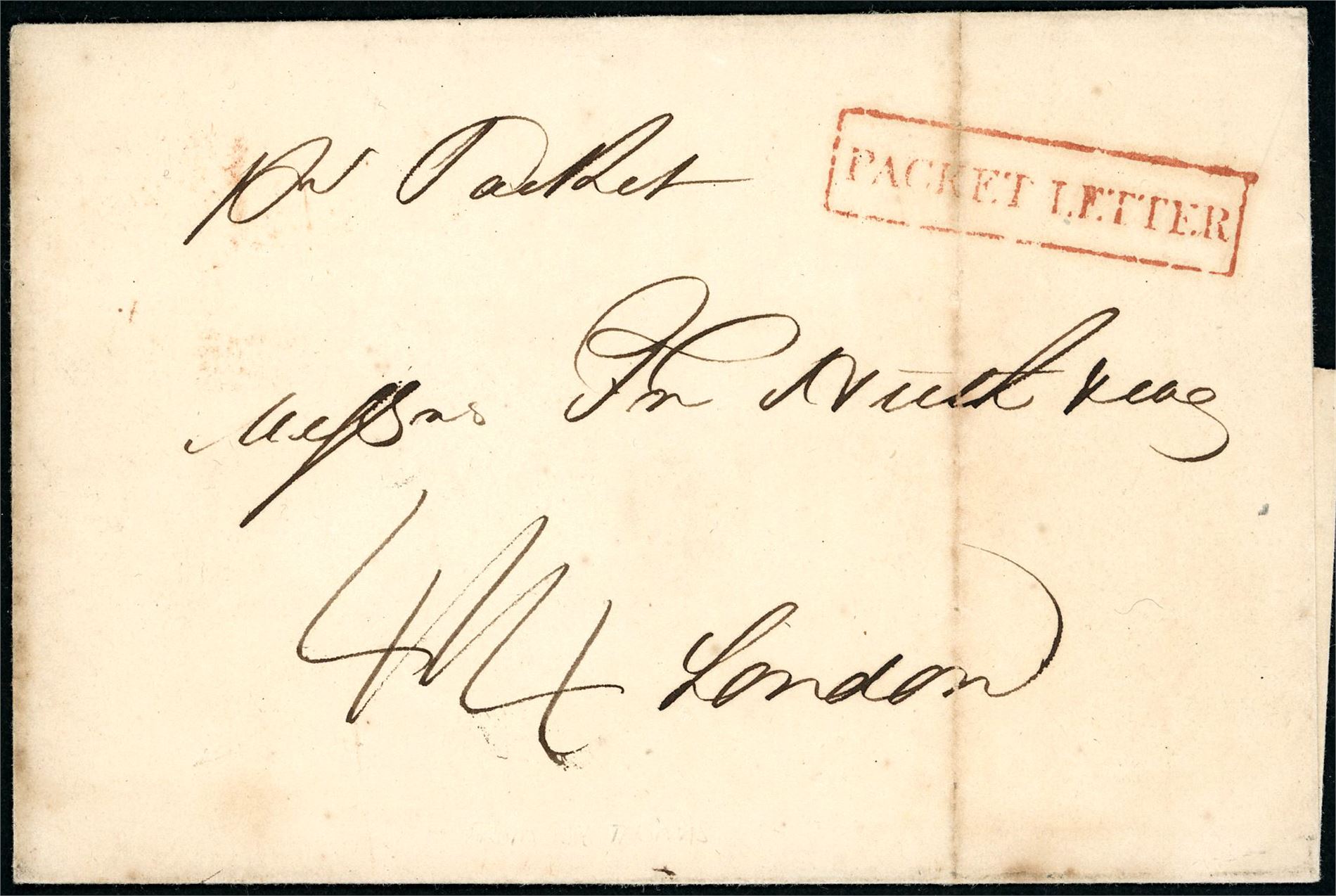 Two "pr Packet"-letter from St Thomas to London: One complete with "Packet Letter" (in box) and "E London 1834" on reverse. This is a "Duplicated letter". The other is en entire with "S 25 Au 25 1839" postmark on reverse. Both with archive crease. (5256113)