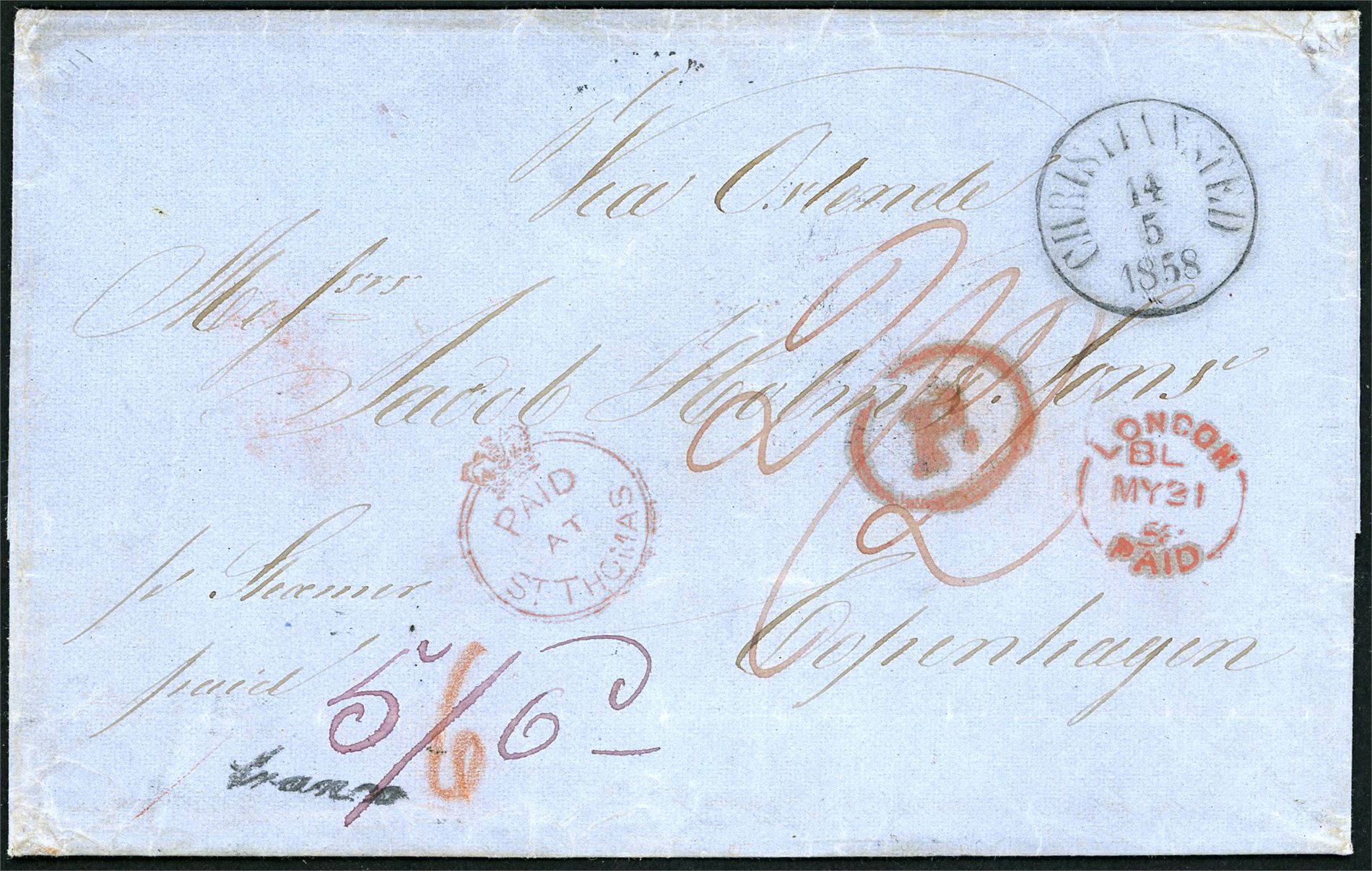 Two stampless covers both sent From St Croix to Copenhagen.: One dobbelweight sent via Ostende 1858 and on dated "St Croix 9. Nov 1860".