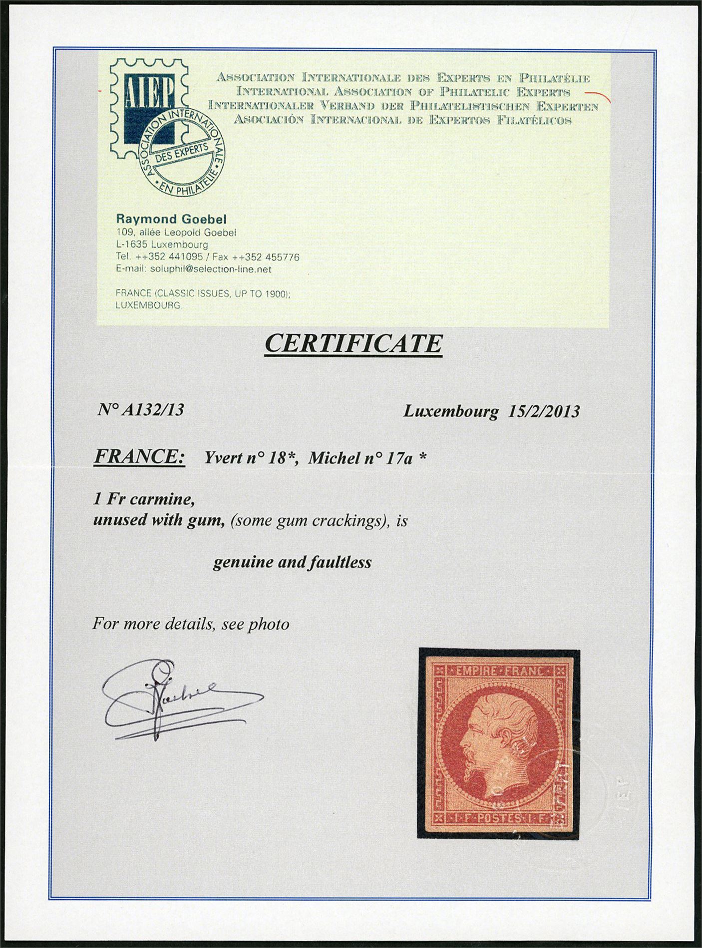 17 a. 1 Fr Napoleon. Very fine mint. Signed Brun. (€ 6500).