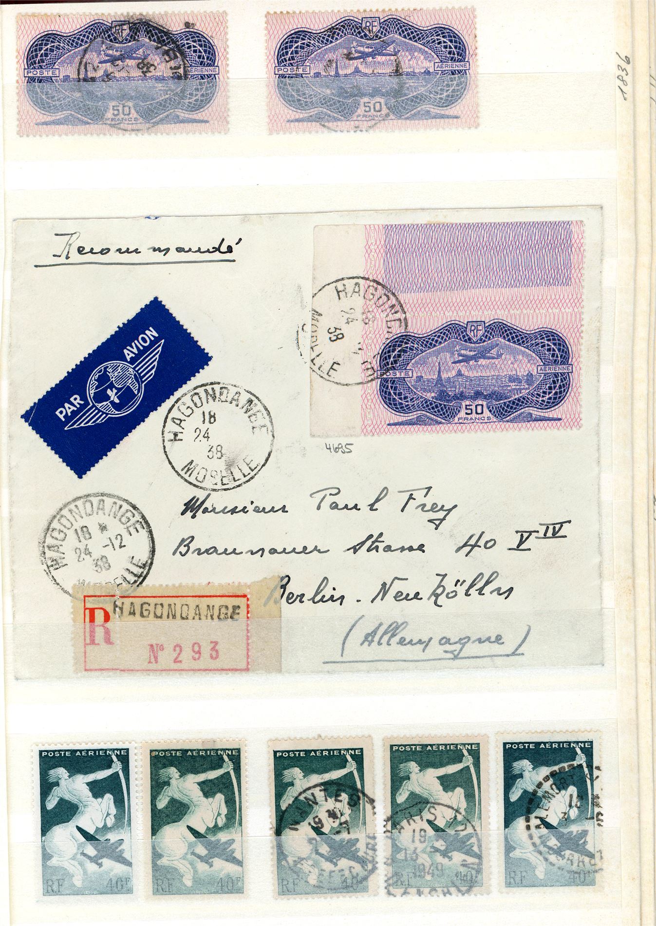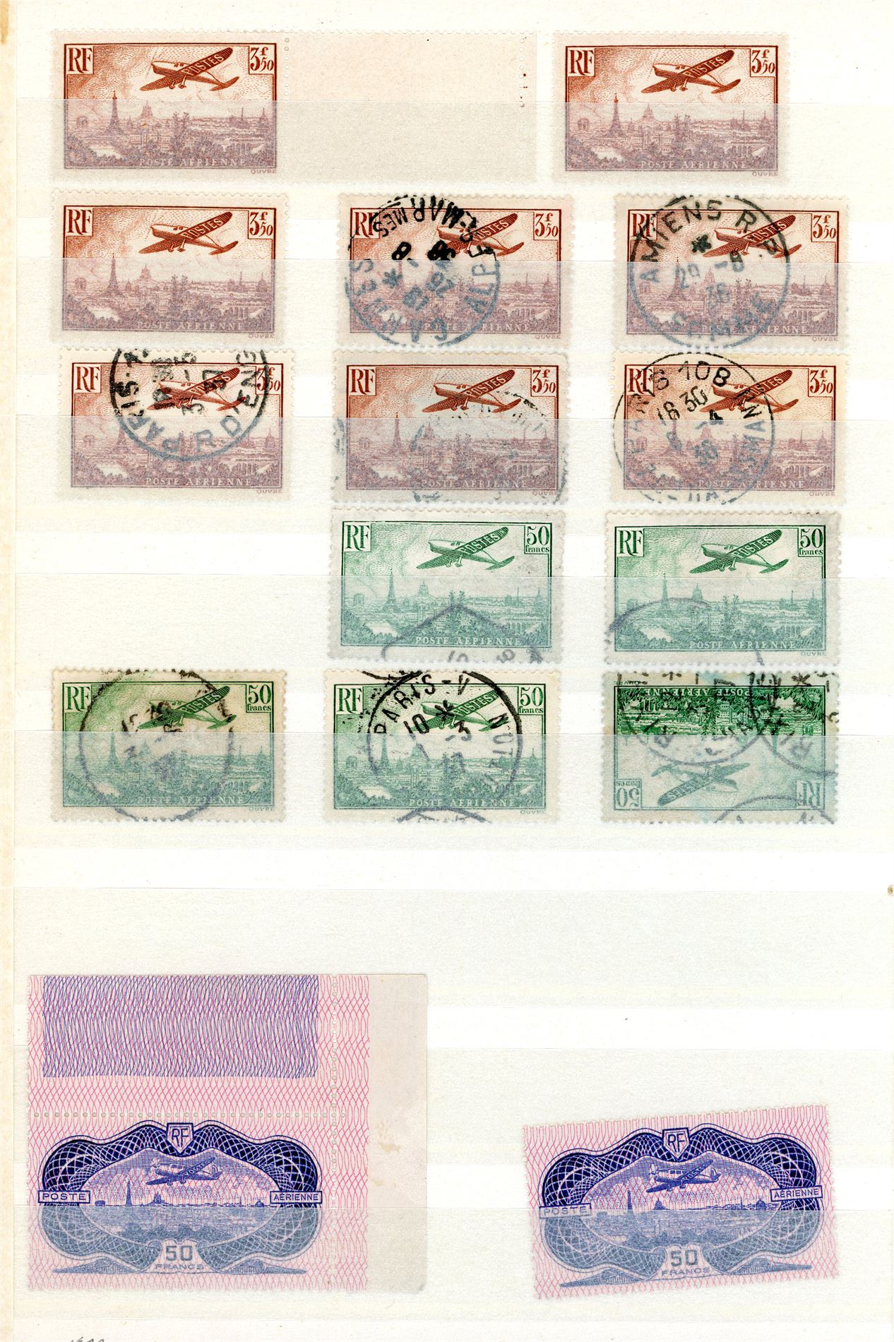 France. A duplicated tange of Air mail stamps in a stockbook.