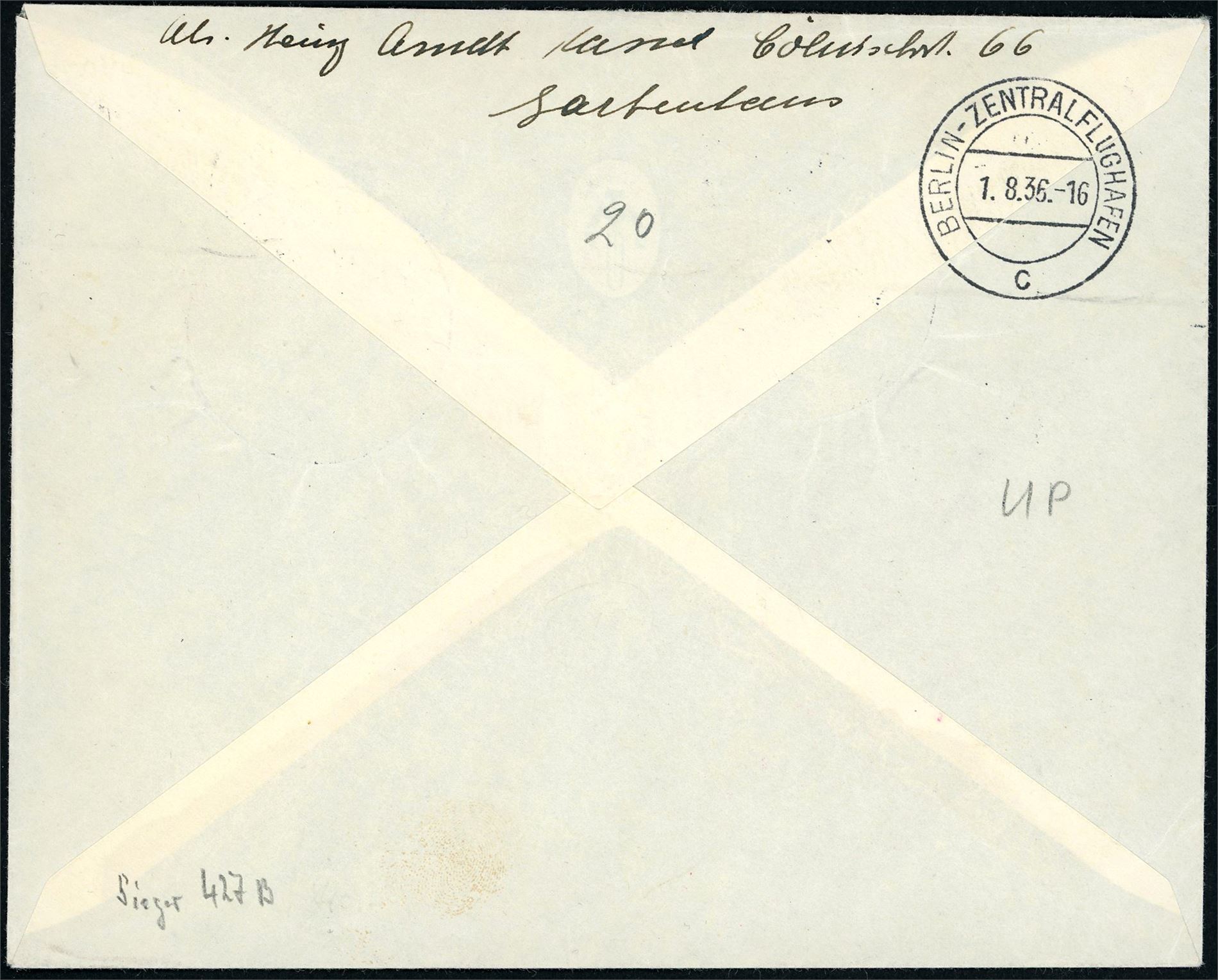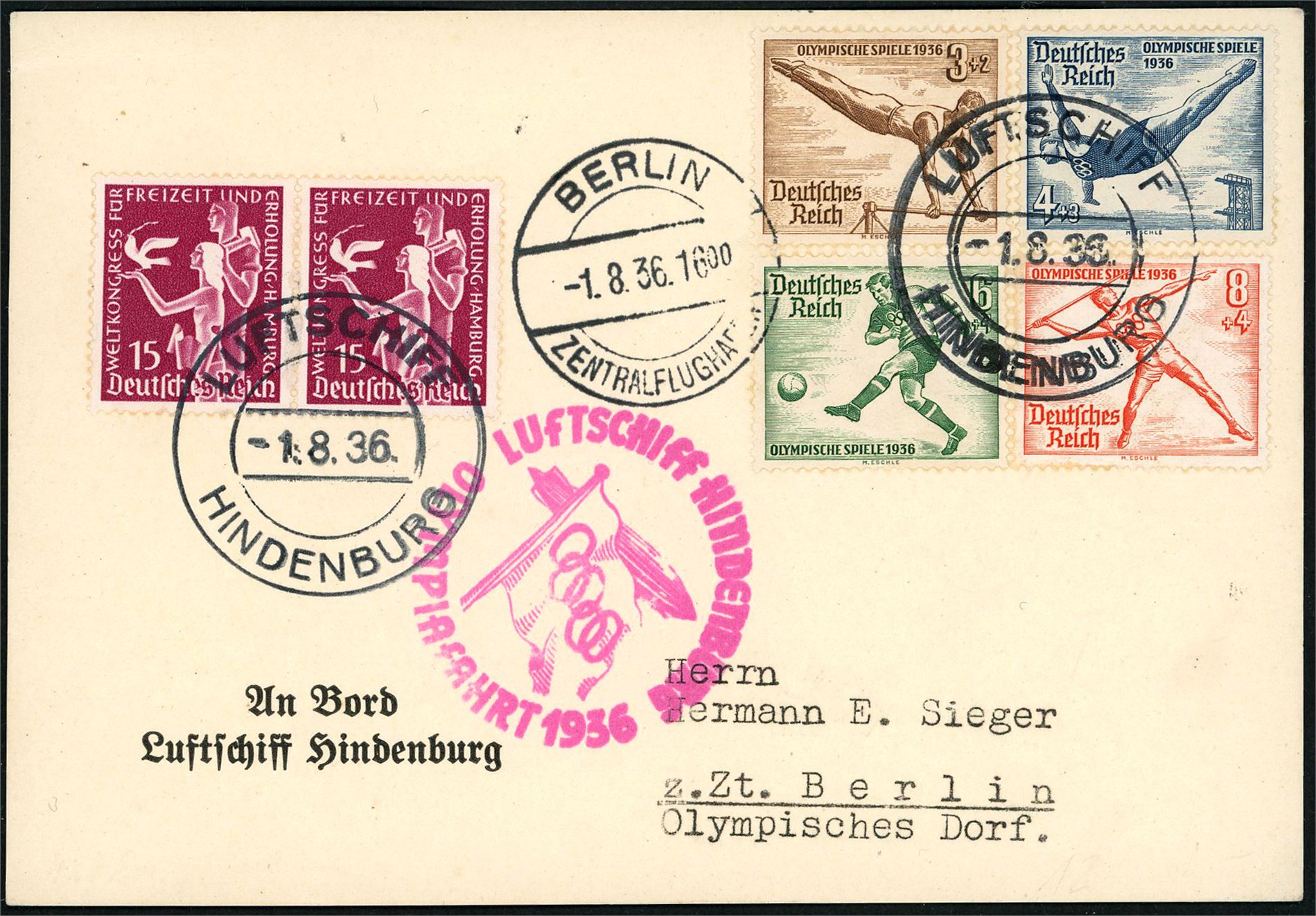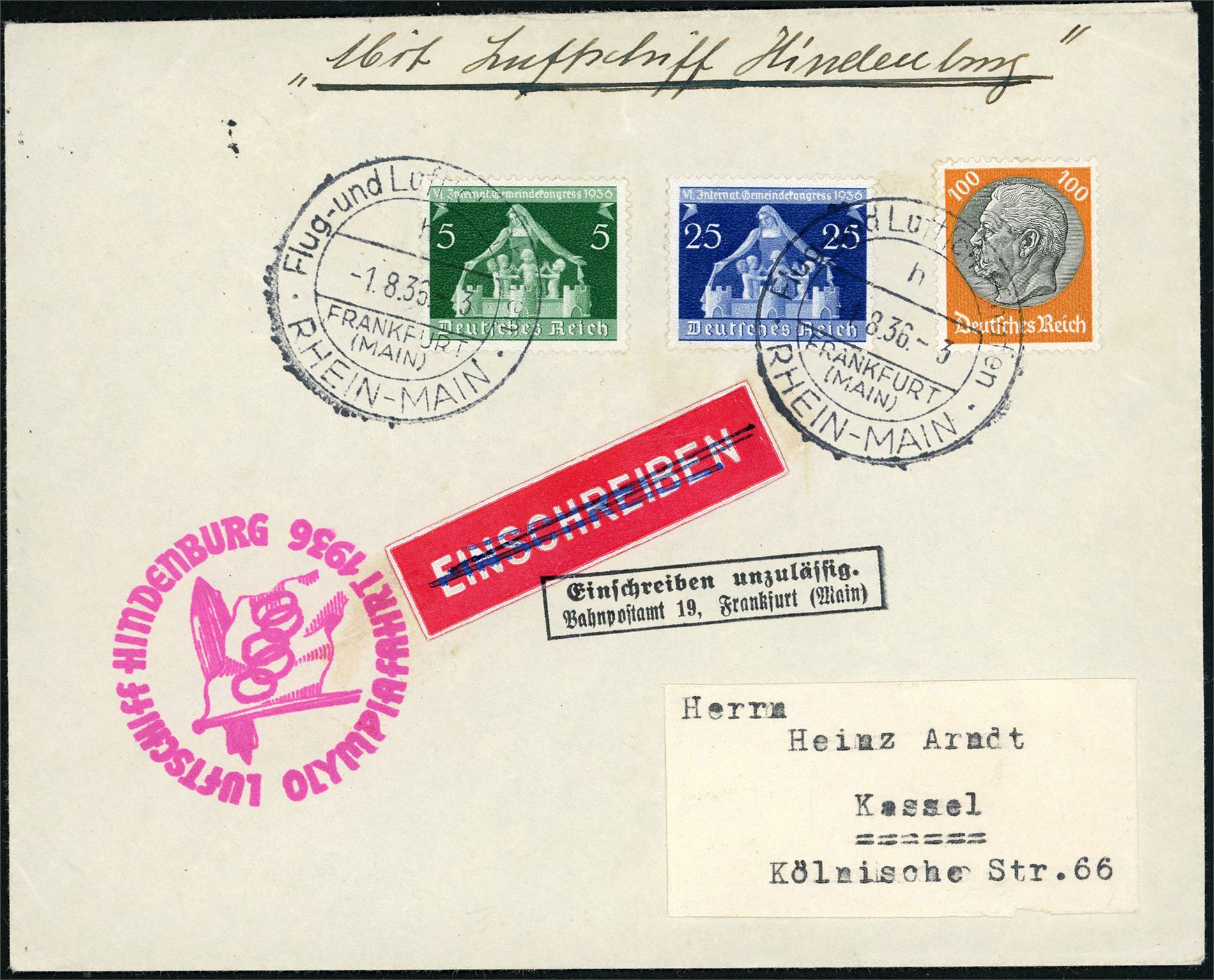 One envelope and one card, both sent with Luftschiff Hindenburg "1.8.36".