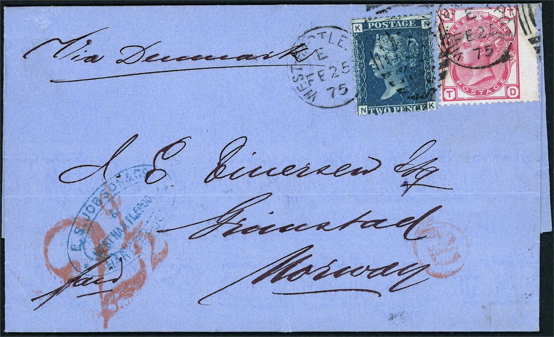 Great Britain. 14 covers, all sendt to Grimstad, Norway between 1862-1875. 12 are with stamps.