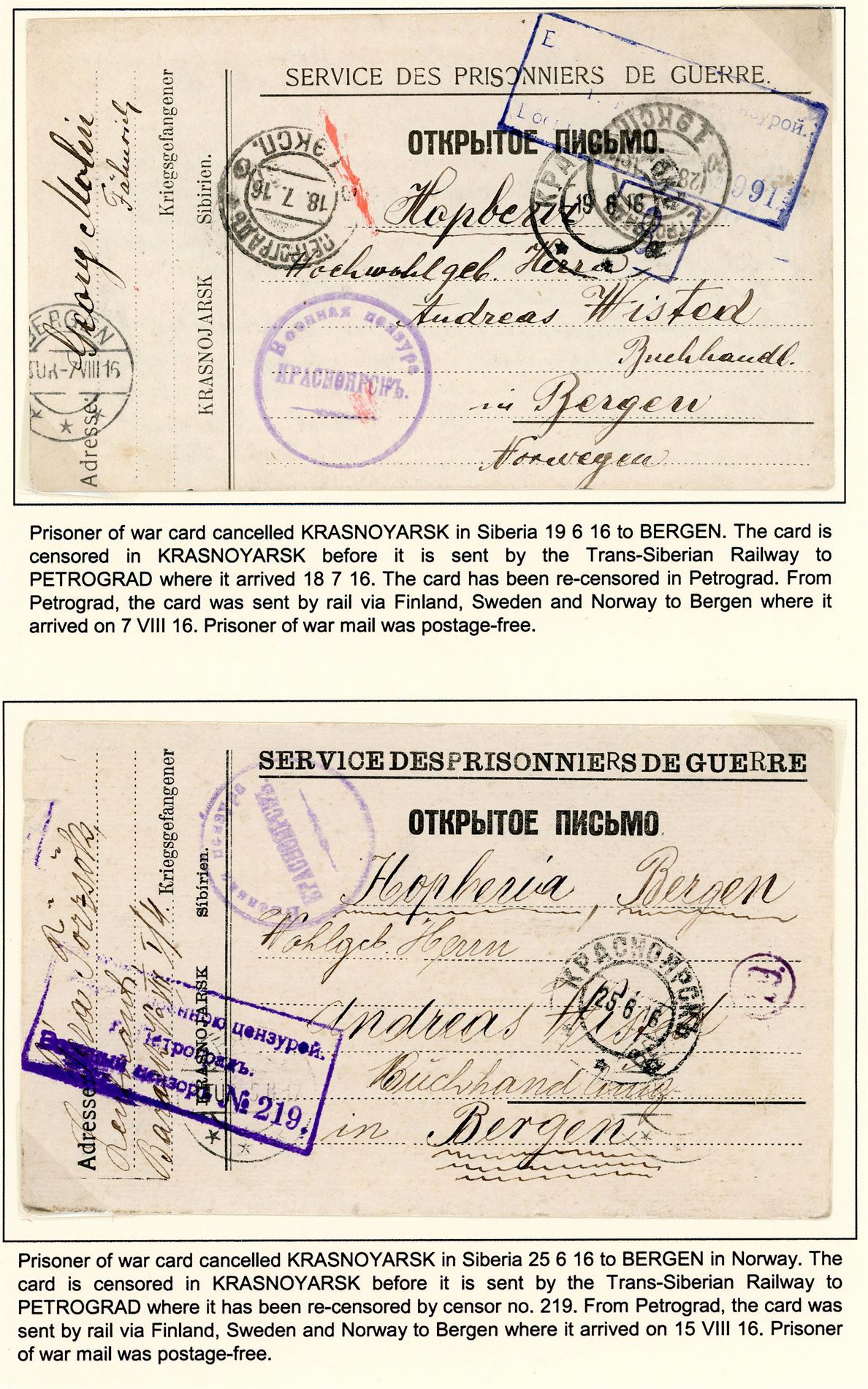 Russia. Three "prisoner of war"-cards, all sent to Norway 1916.