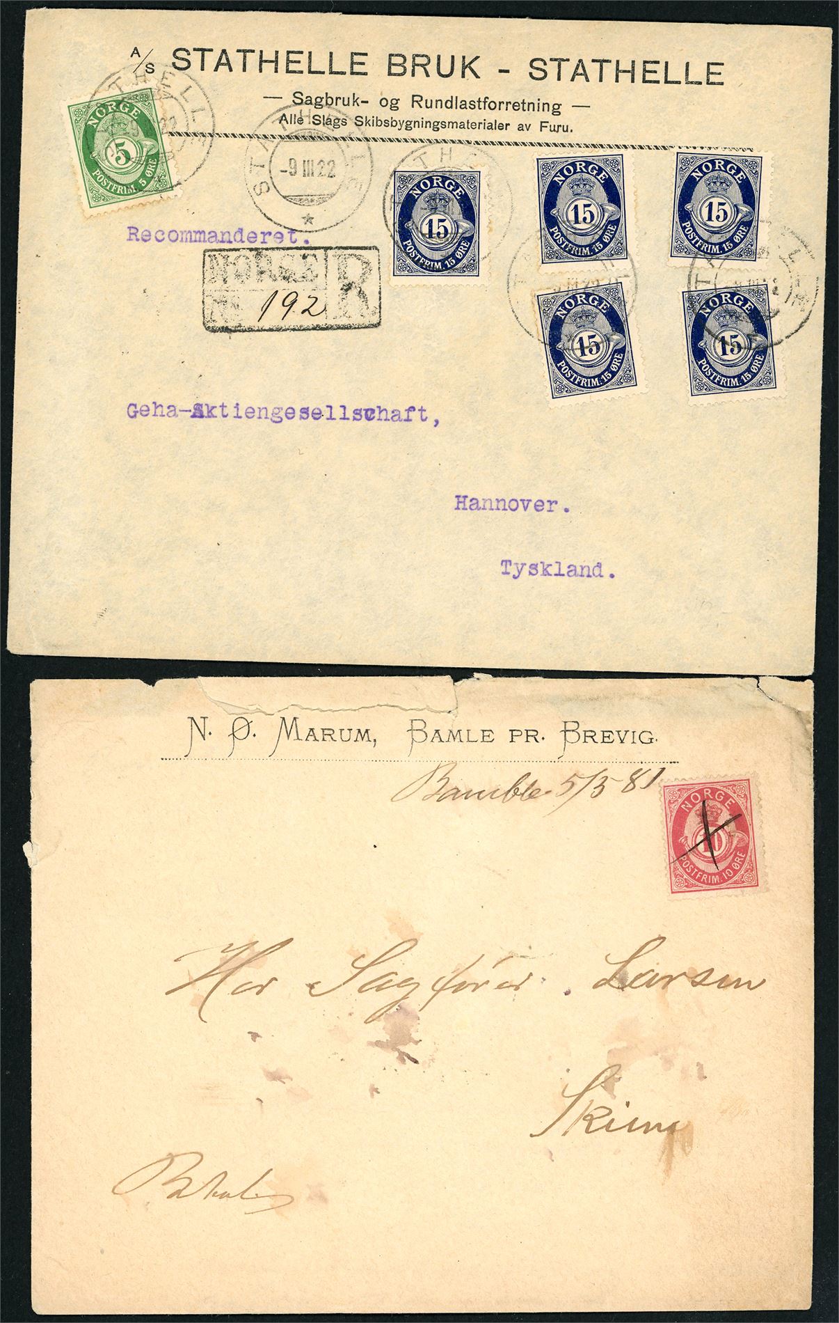 We will send the stamps with the Post. We charge for stamps with a price below NOK 2,000,,- they will mostly be sent as normal letters, postage will be charged at NOK 50 domestic and kr 100,- to other countries. For heavy boxes, we charge the Post + NKr 100,-