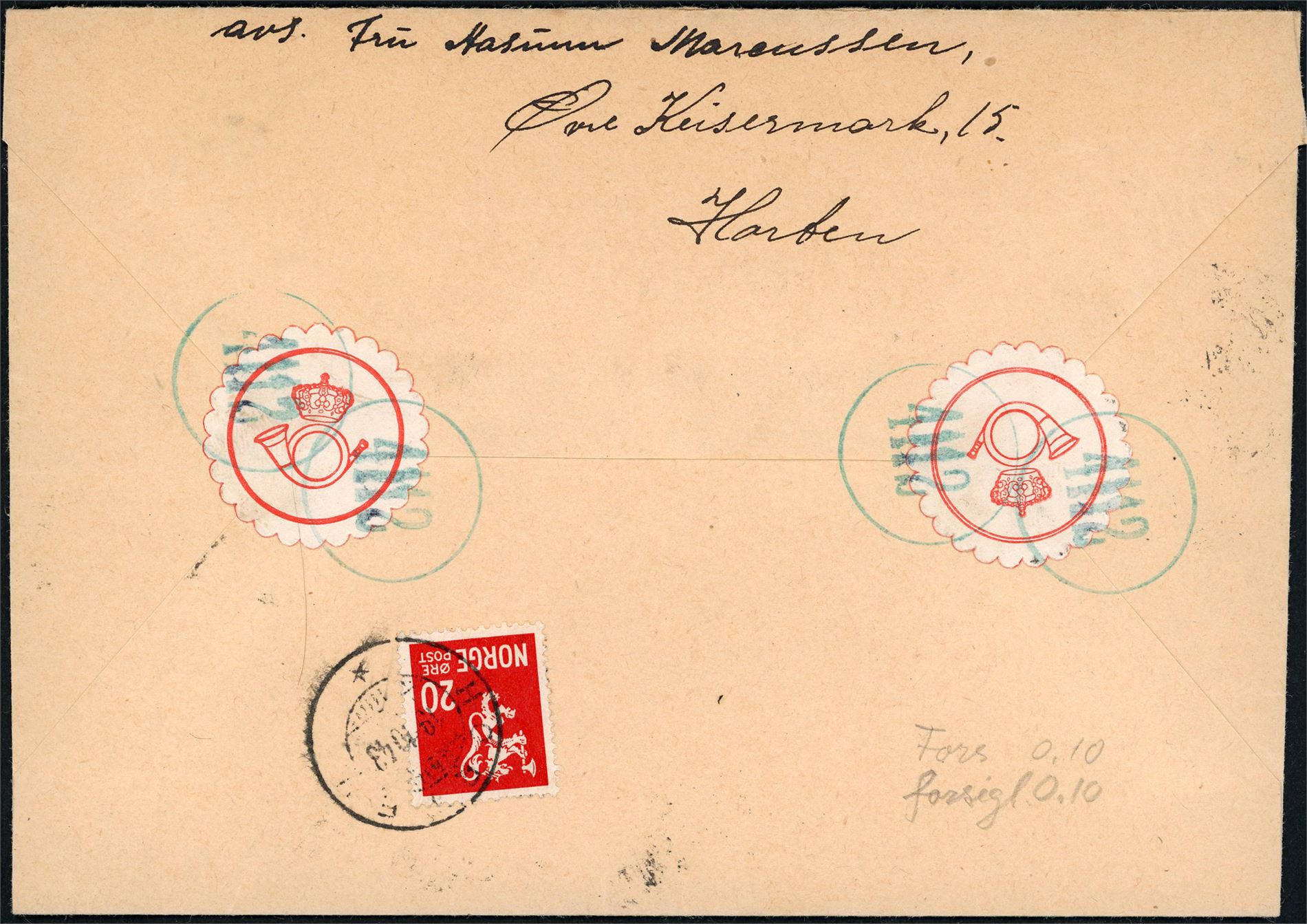 At the hammer price there will be a 20% commission plus any postage and Nkr 100 in bank-charge. If it is desired to submit objects for certification, this must be agreed within the first three days of the auction. Payment is made as an advance or upon collection of the objects.