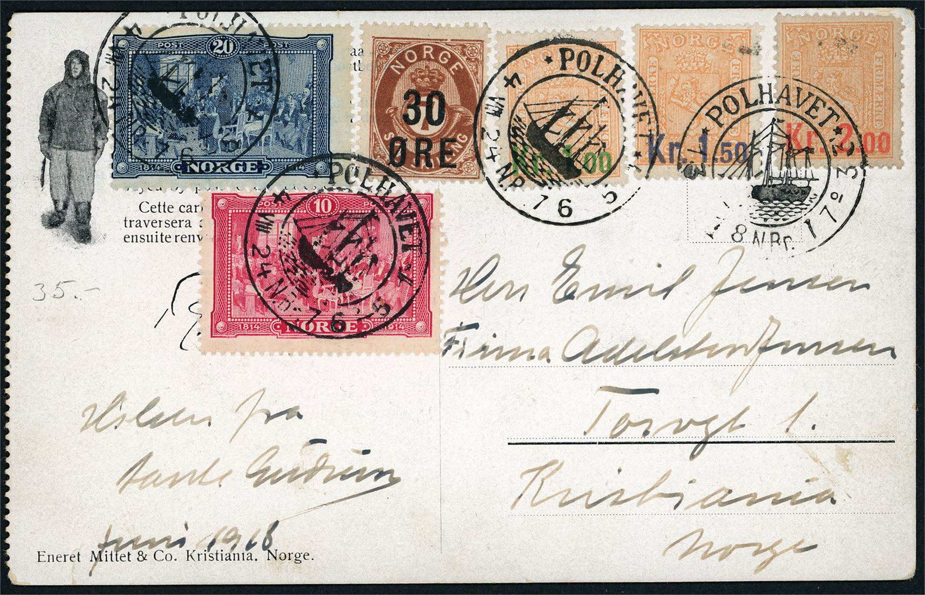 At the hammer price there will be a 20% commission plus any postage and Nkr 100 in bank-charge. If it is desired to submit objects for certification, this must be agreed within the first three days of the auction. Payment is made as an advance or upon collection of the objects.