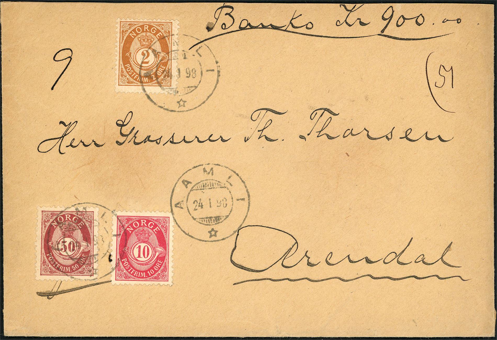 Ca 200 forsendelser med stempler fra Aust Agder. Fra ca 1890 og nyere.