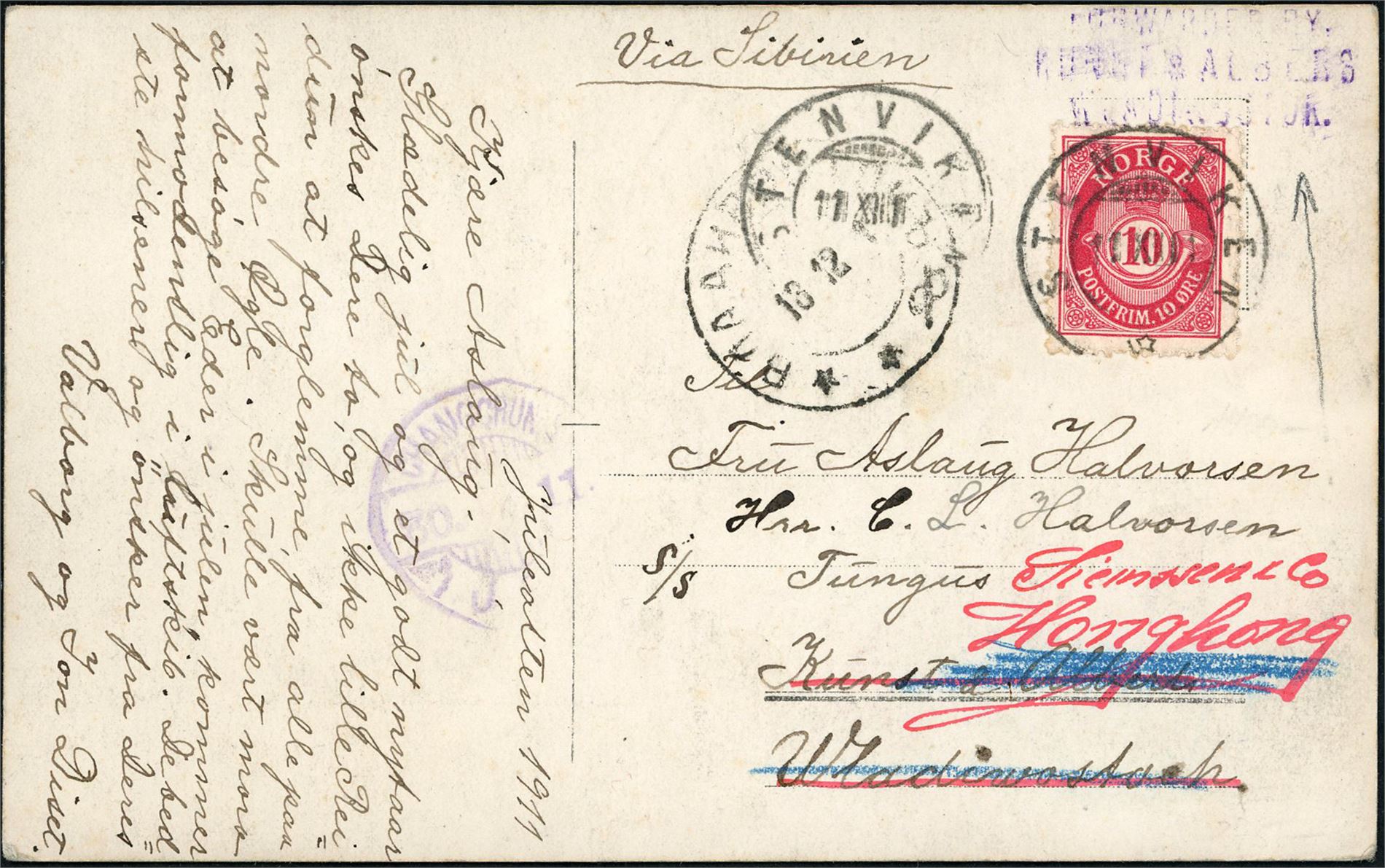19 forsendelser, hvor 4 er frankert med fintagget Knudsen, 14 med Posthorn 1909/19 og en med Eidsvold. 9 er sendt til Finland og 7 er sendt til Russland.