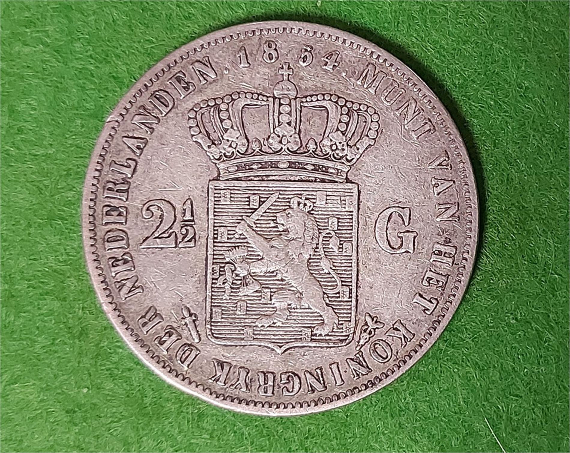 HOLLAND, WILHELM III 2½ G 1854, 25gr, 0.945 silver. (Kv. 1)