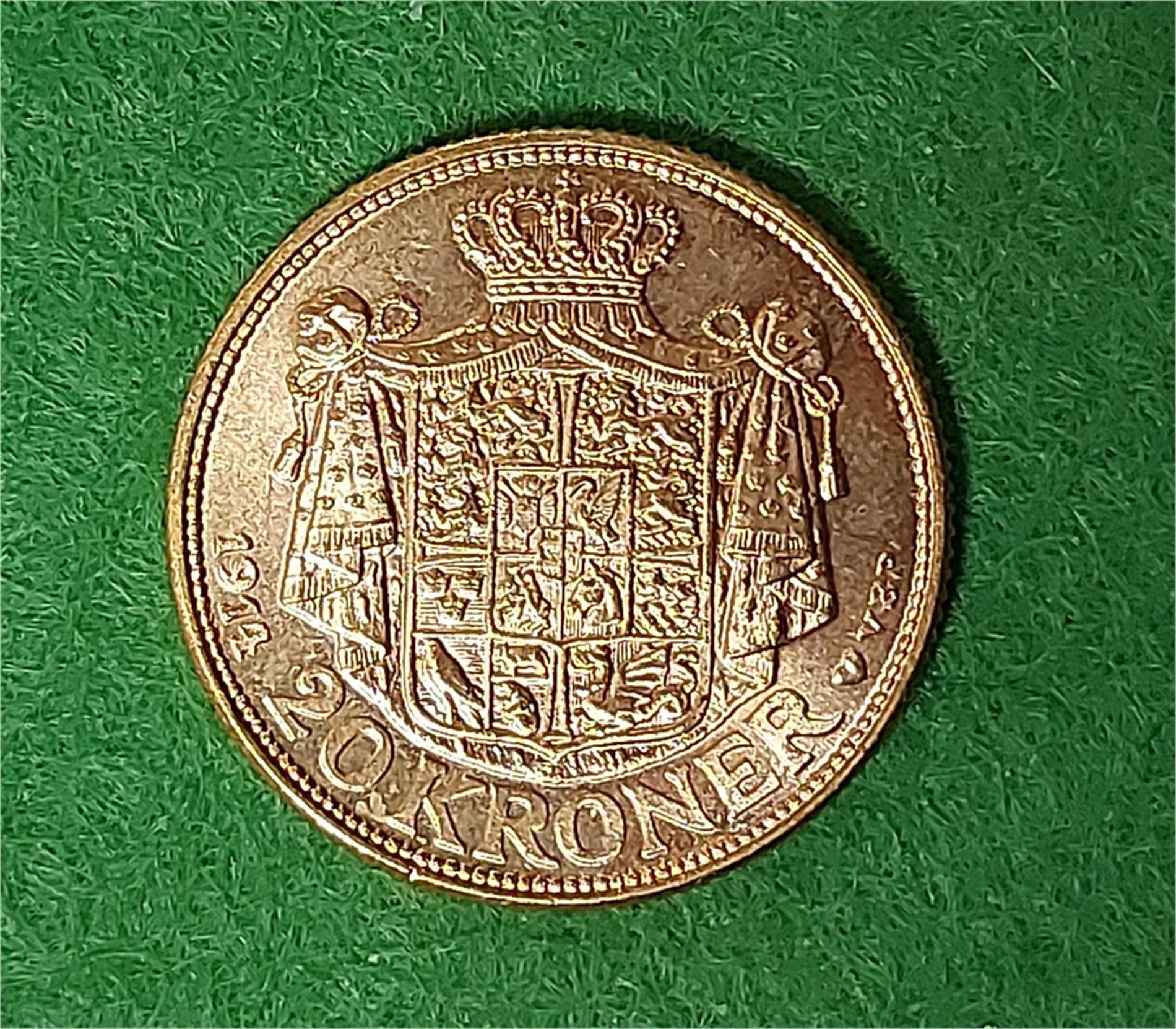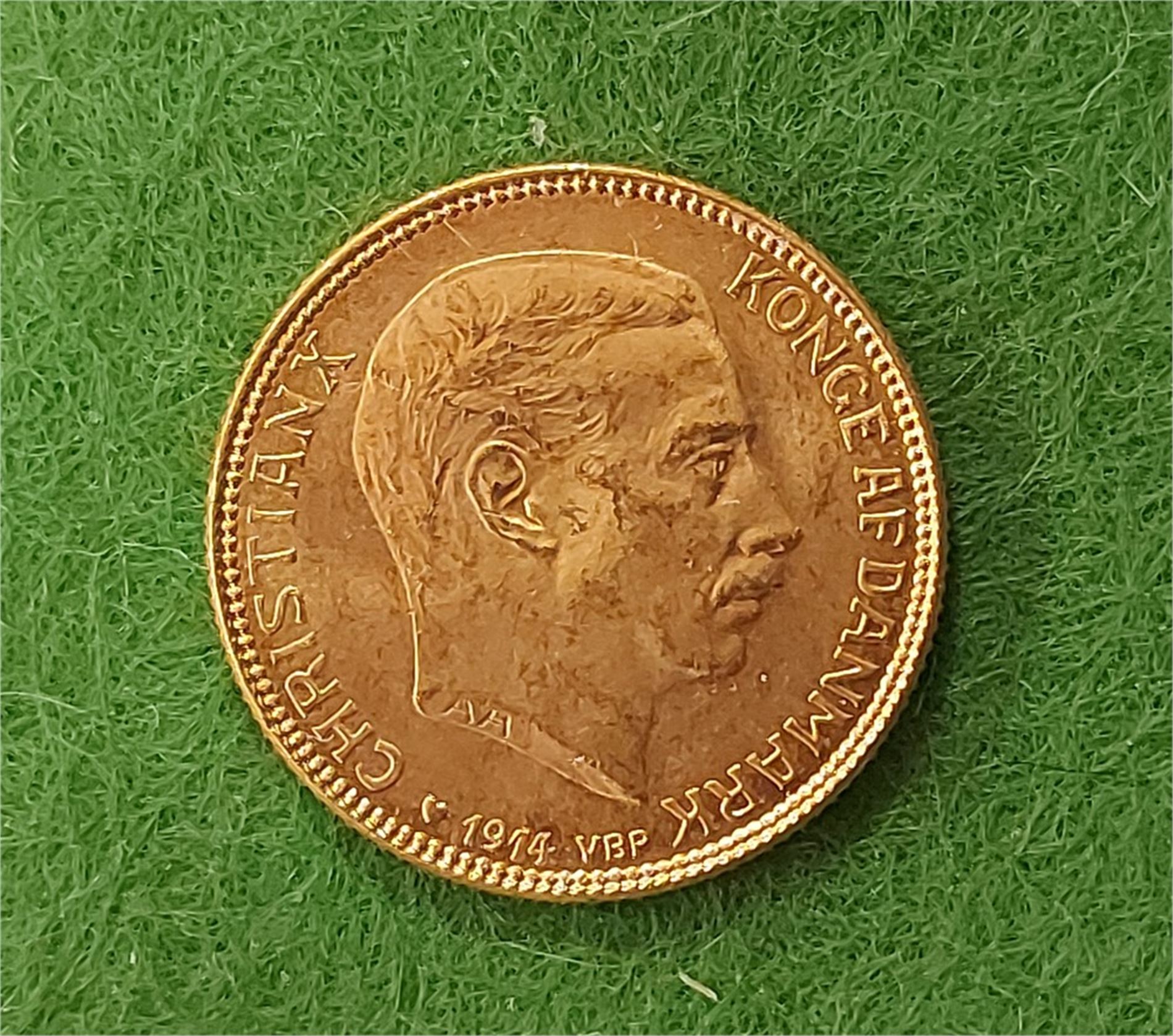 DANMARK CHRISTIAN X 20 kr 1914, 8.9606 gr 0.900 guld. Kv. 01