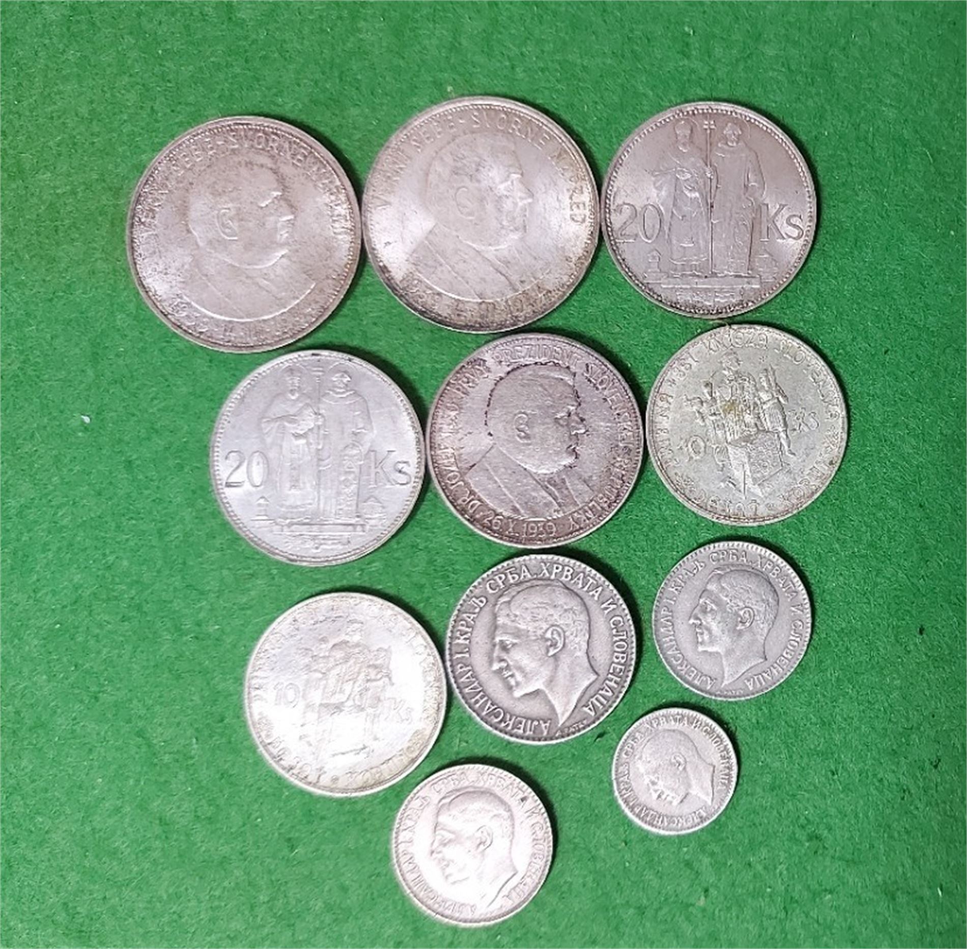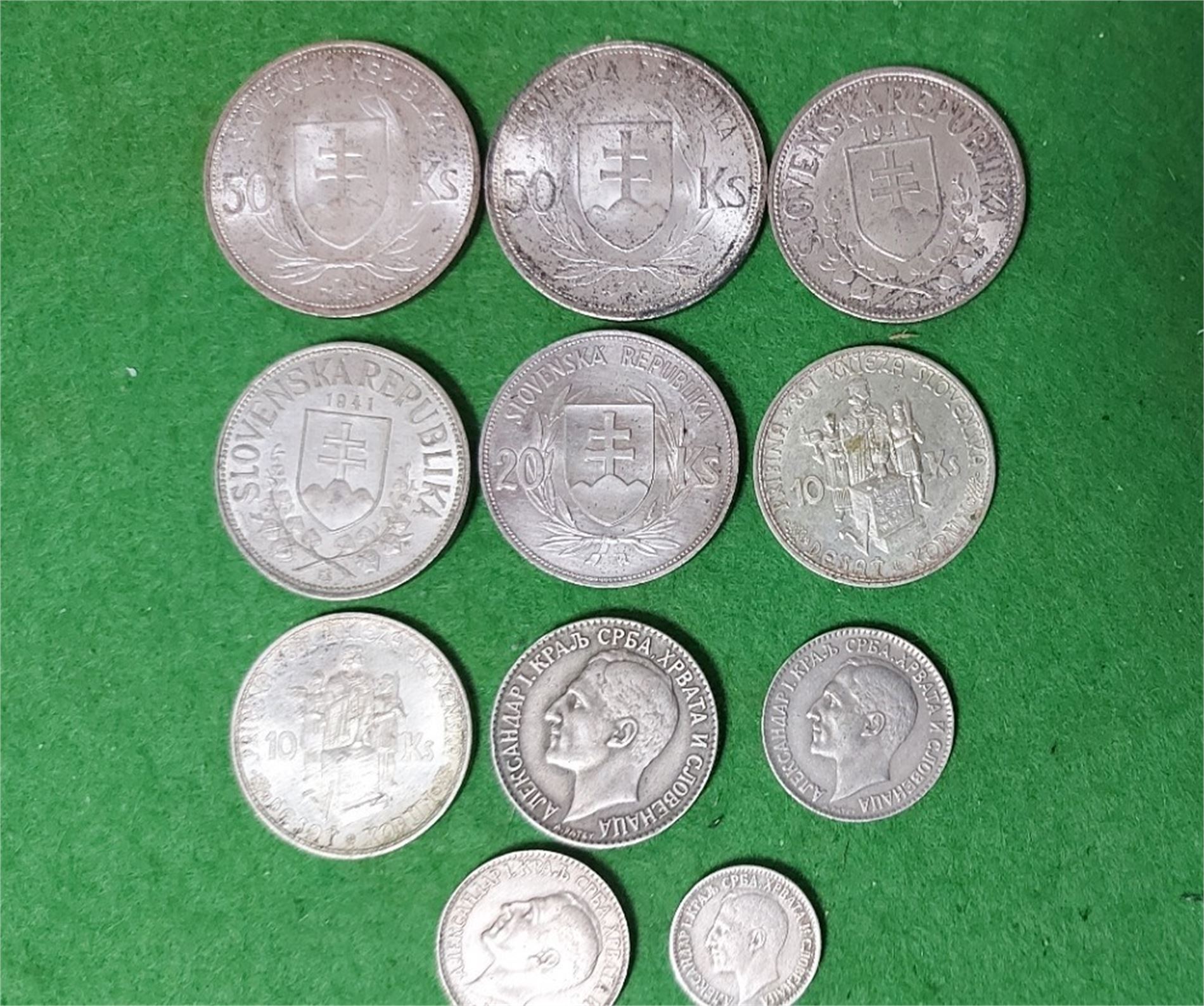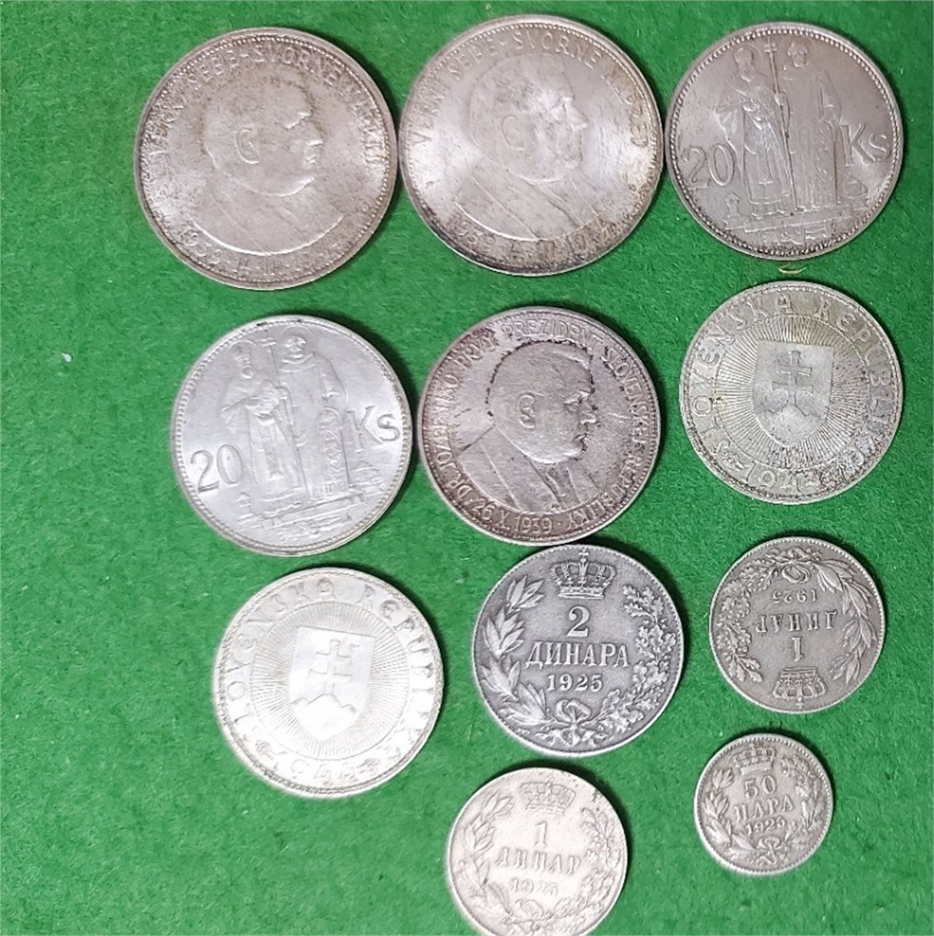 SLOVAKIEN-YGOSLAVIEN parti 11 mynt 1930-50-tal, bland annat i silver