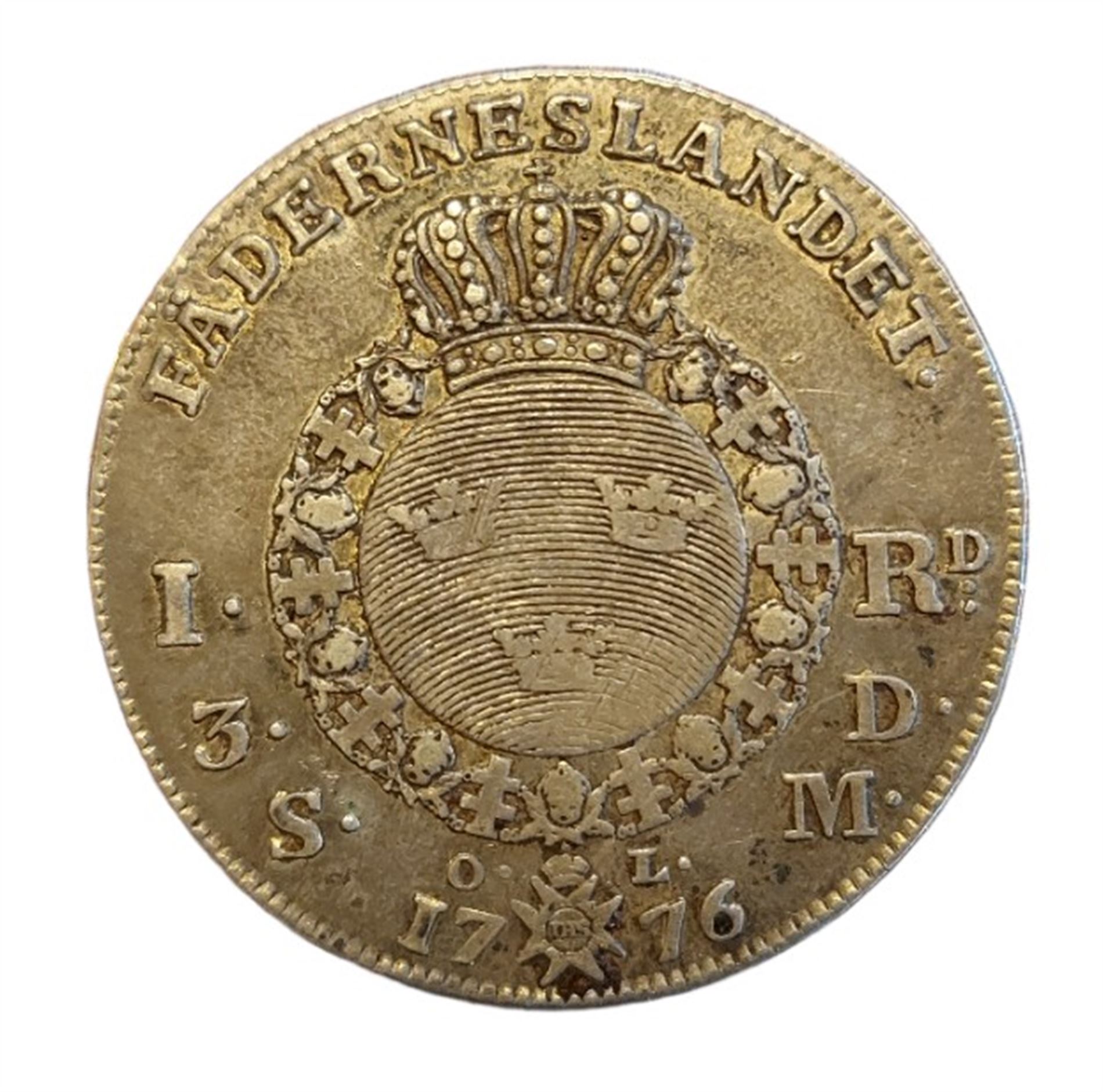 SVERIGE GUSTAV III 1 Riksdaler 1776, repor. (Kv. 1+)
