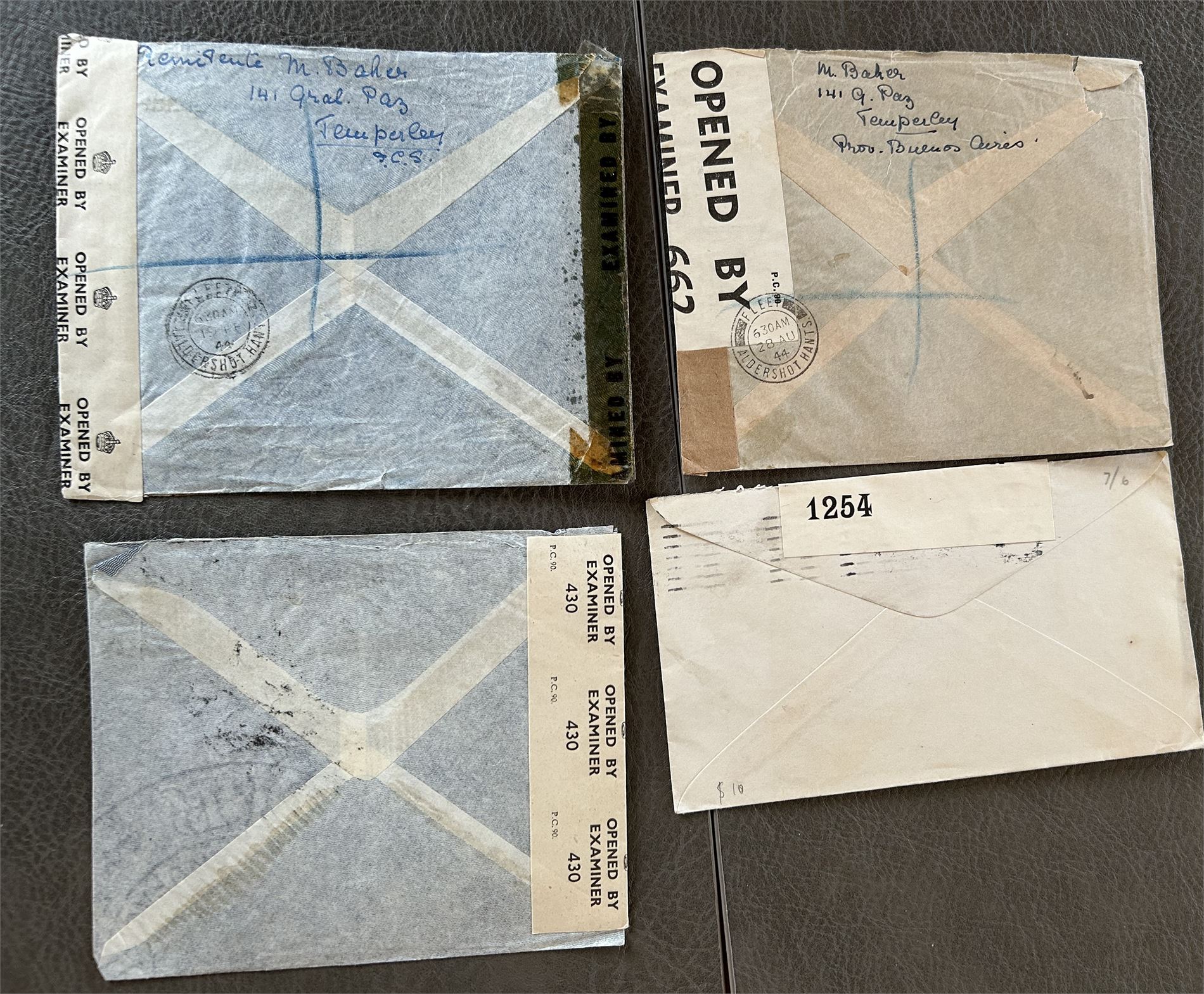 BREV 1. VERDENSKRIG 4 brev fra USA og Argentina til England og Danmark