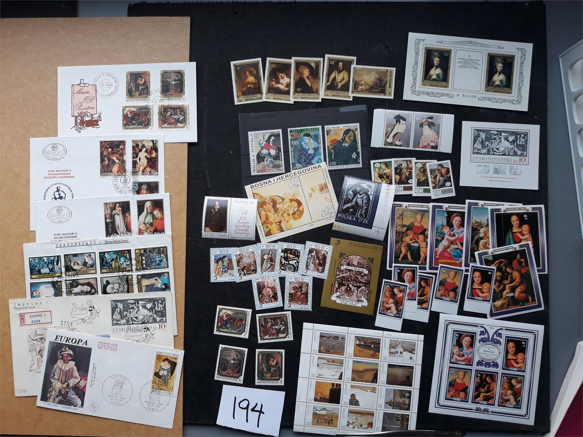 MOTIV: MALERIER xx diverse merker og miniark + noen brev/FDC