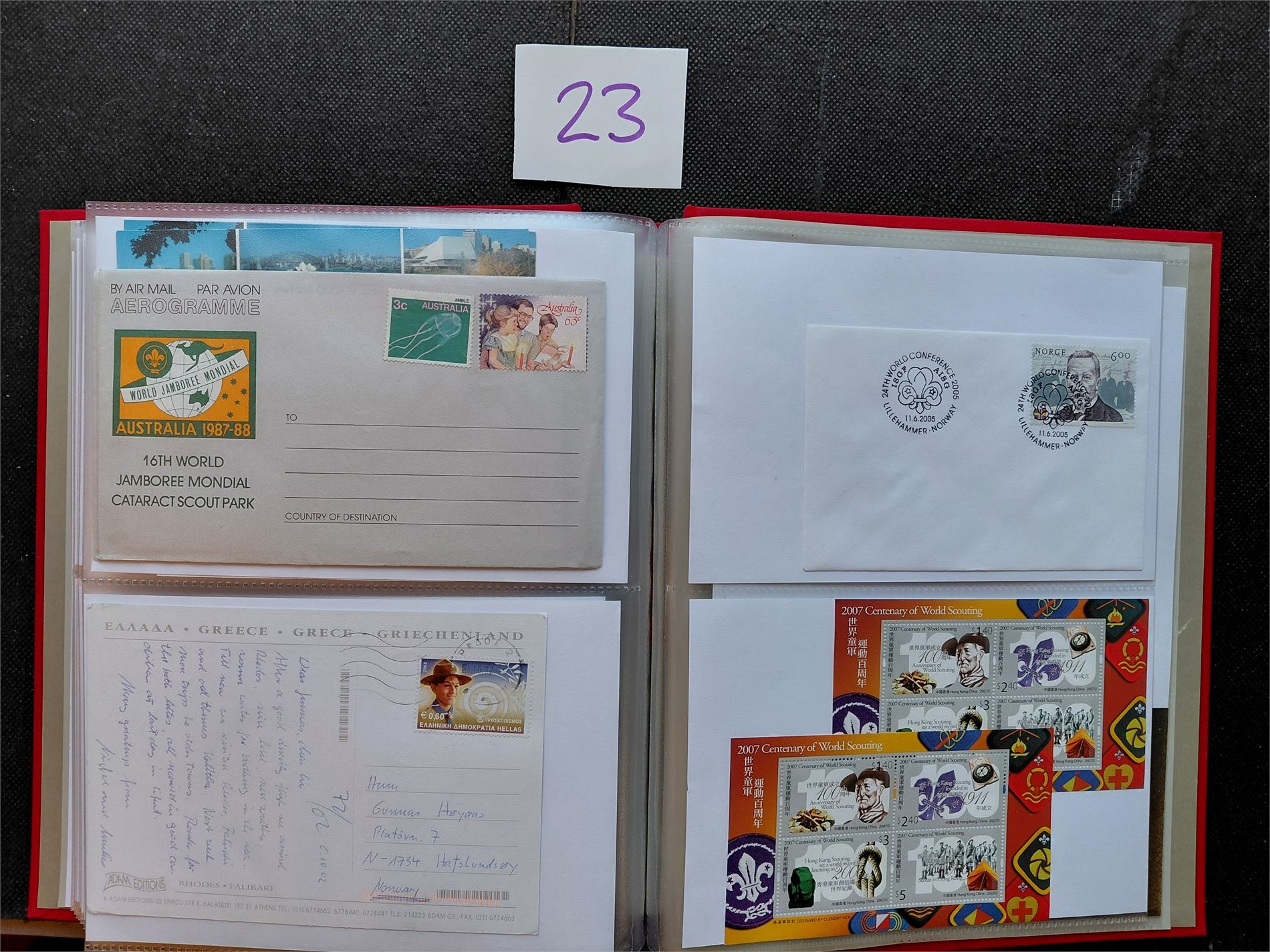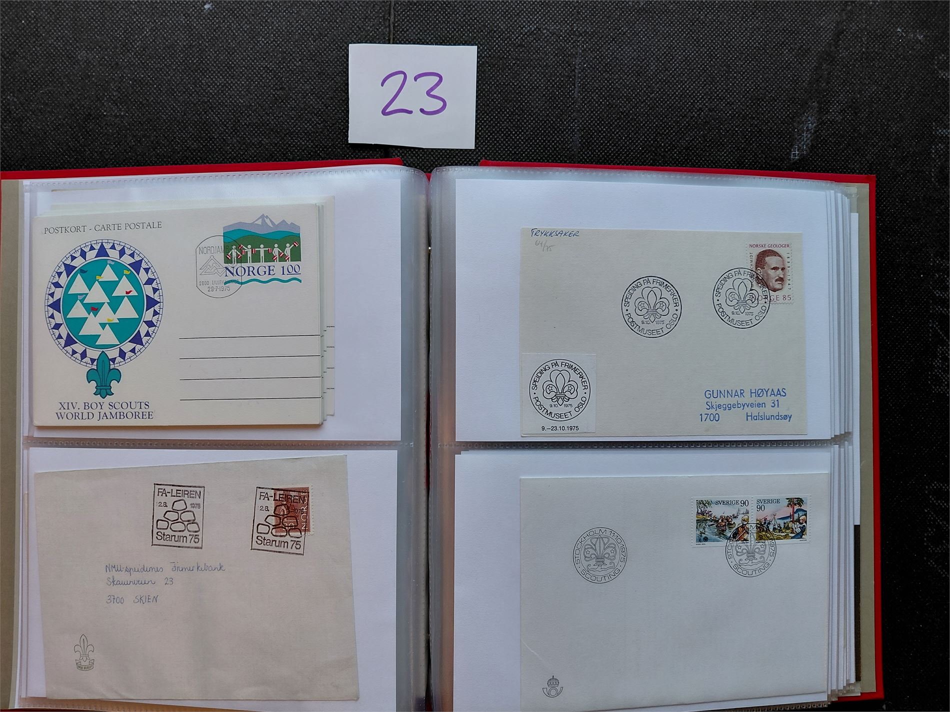 MOTIV: SPEIDERBEVEGELSEN Diverse spesialstempler og annet i Davo FDC-perm