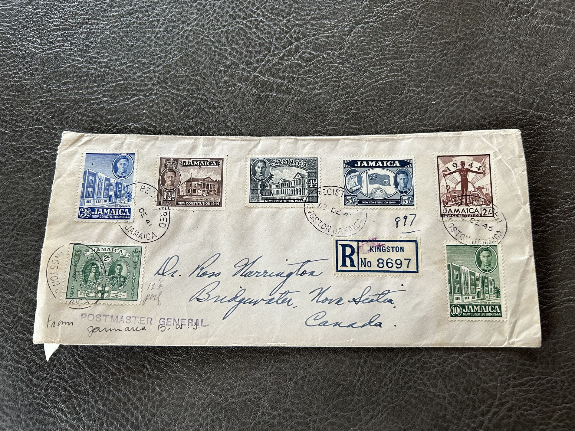 JAMAICA Rekbrev med SG 134-40 til Canada fra Postmaster general