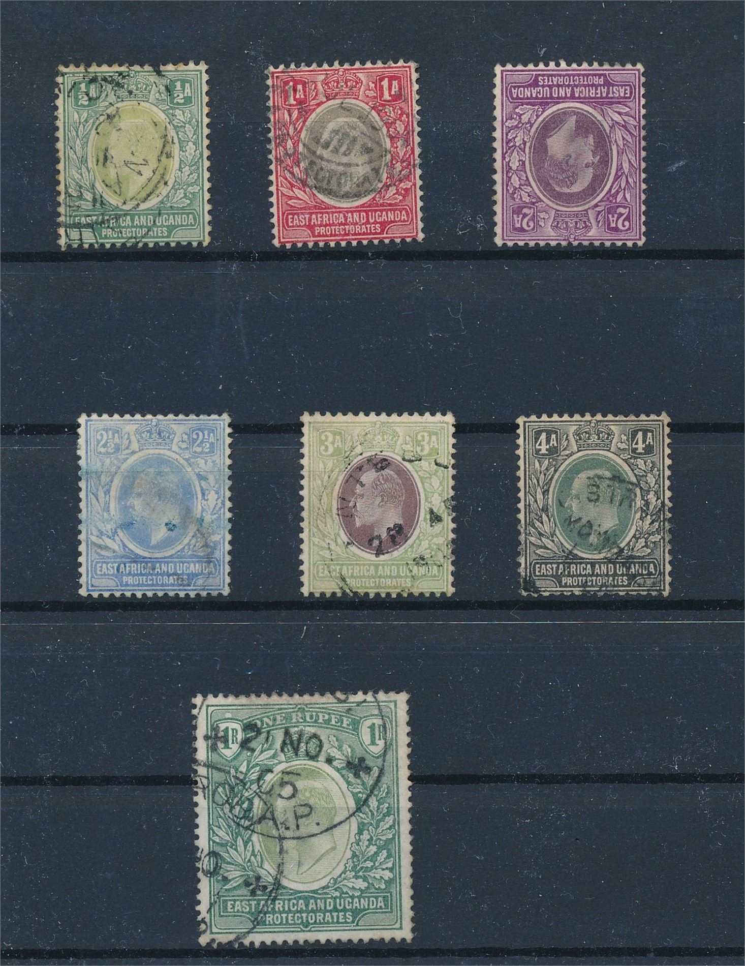 EAST AFRICA & UGANDA o/x SG 1-6 + 9. 2a er defekt (oppgitt £ 257 antagelig for alle merkene)