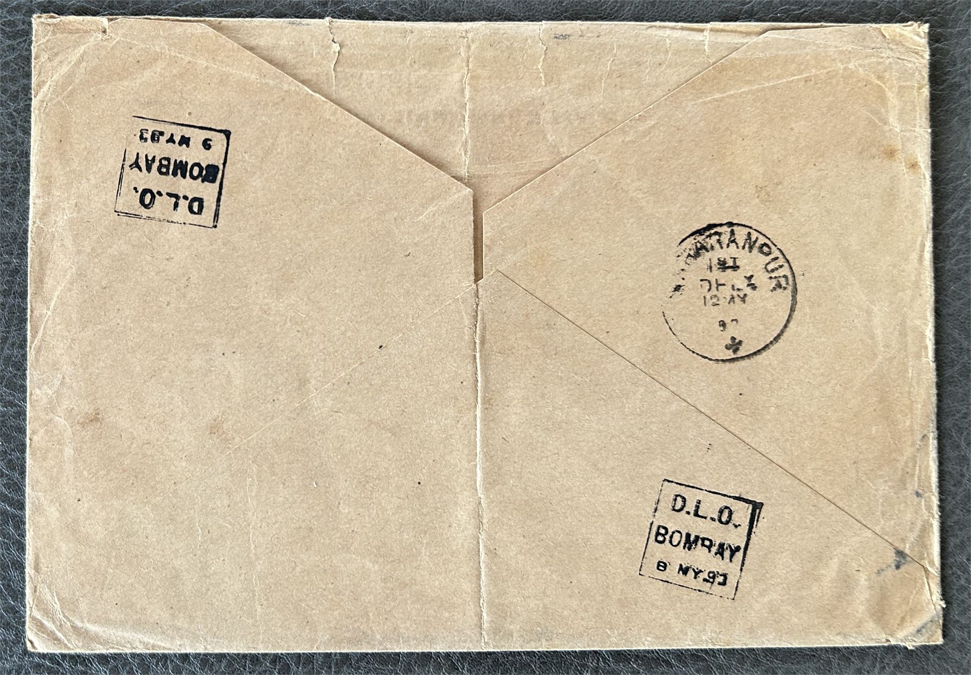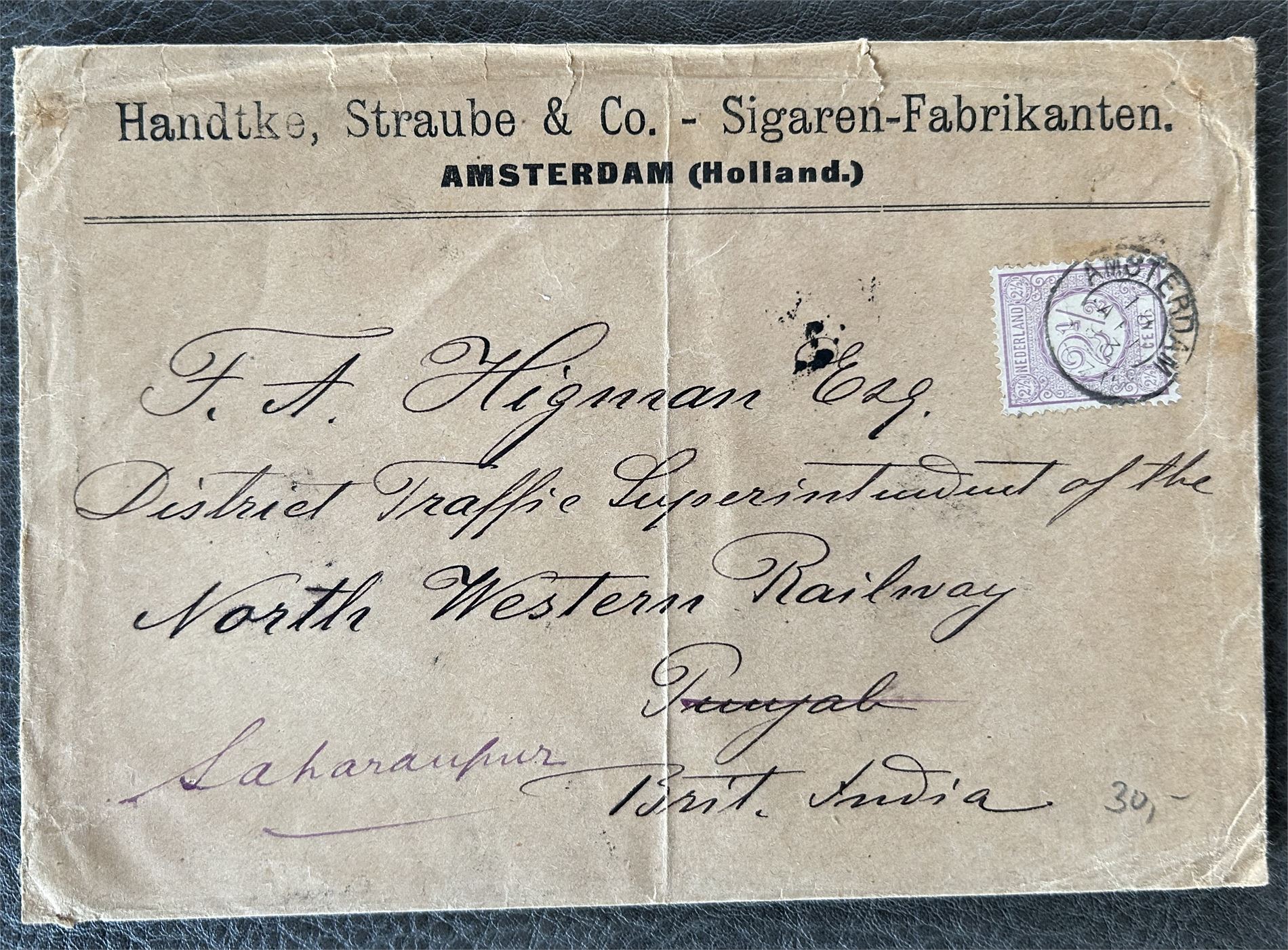 NEDERLAND-BREV 1893 til British India. Vertikal brett, stempler bak, se foto nr 2