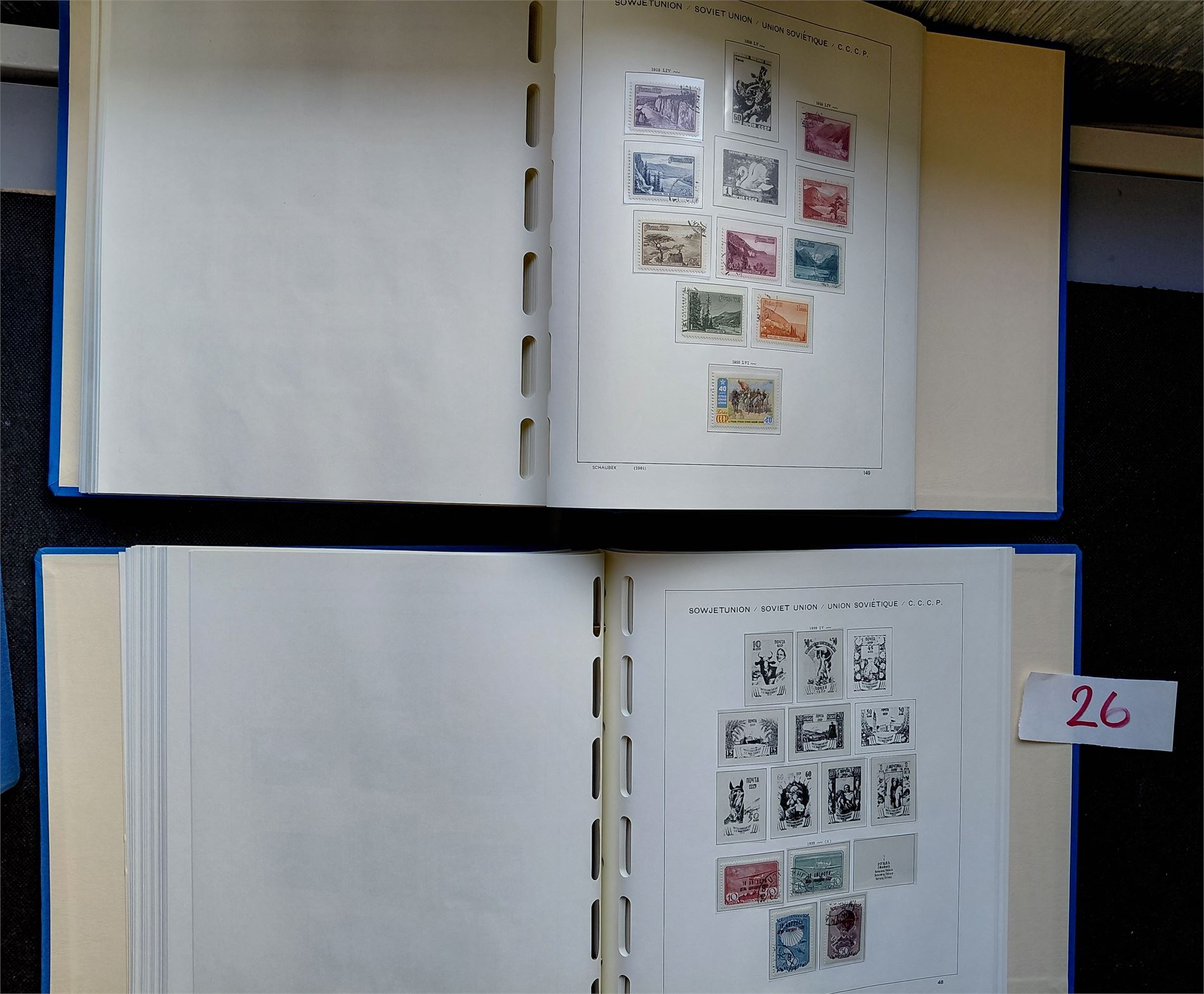 SOVJET Glissen samling i 2 Schaubek album med lommer 1918-59. Et album med kassett. Lite merker, men veldig pene album