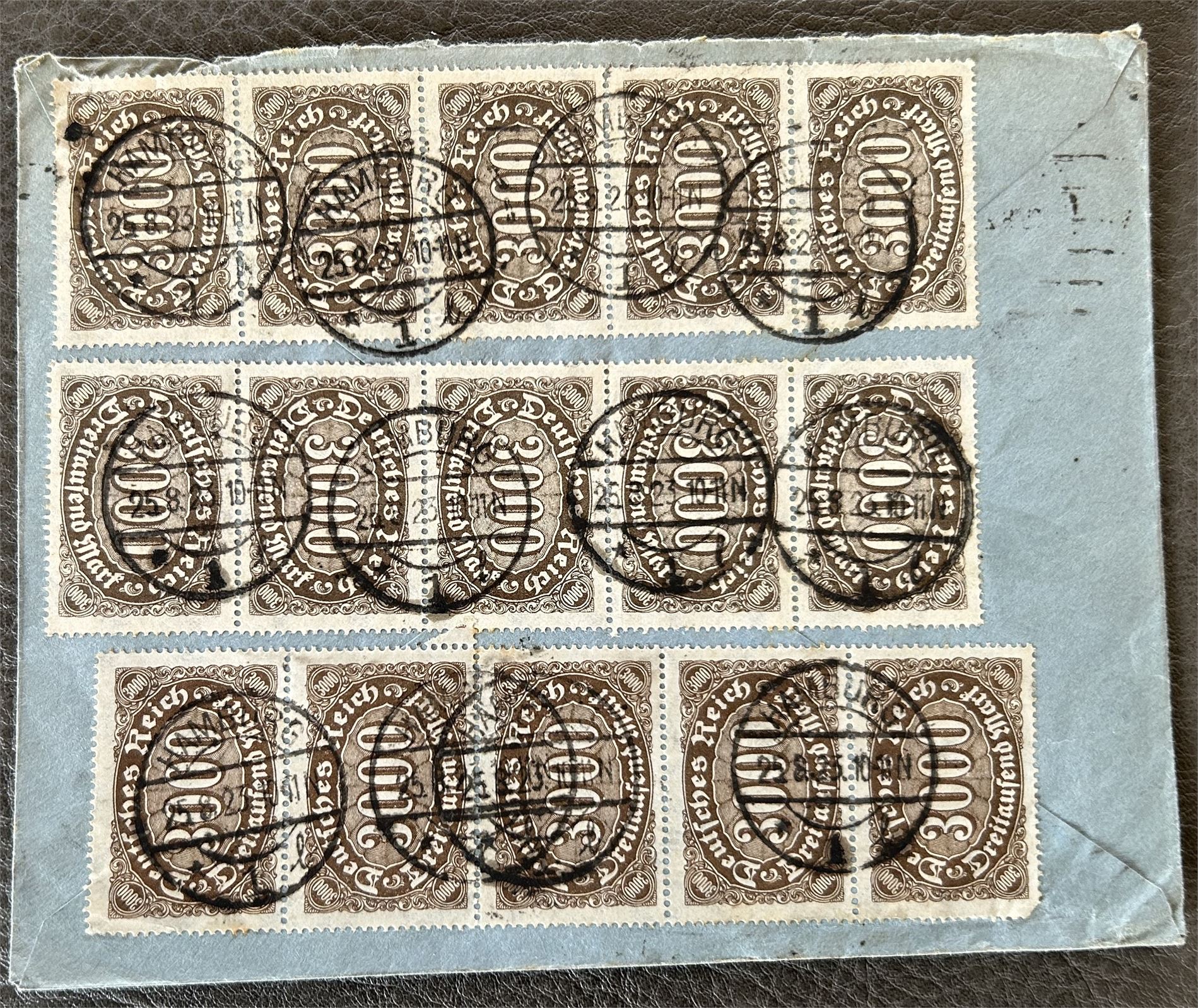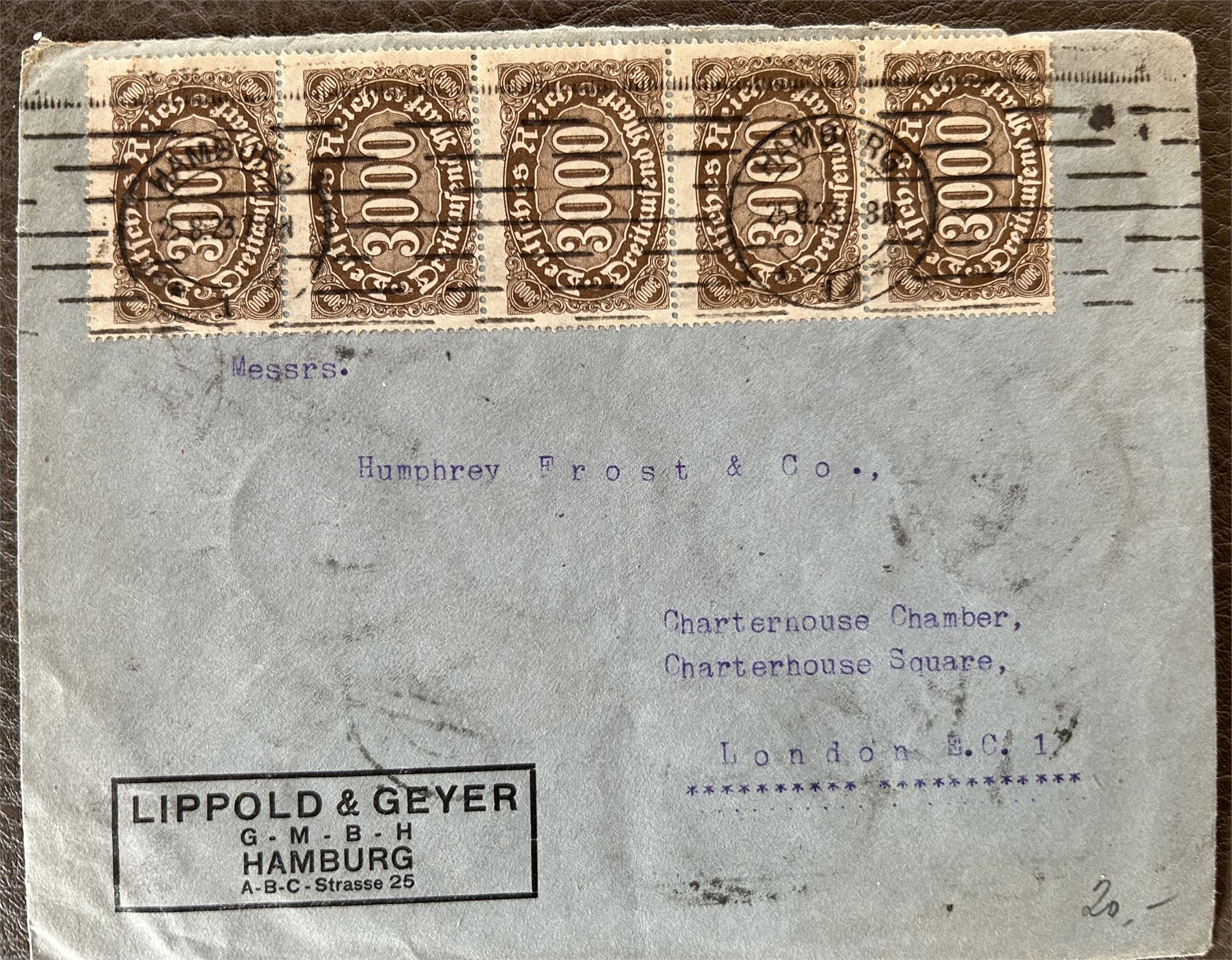 REICH-INFLASJONSBREV Brev til London med porto 60000 Mark. Gyldig portosats i 7 virkedager