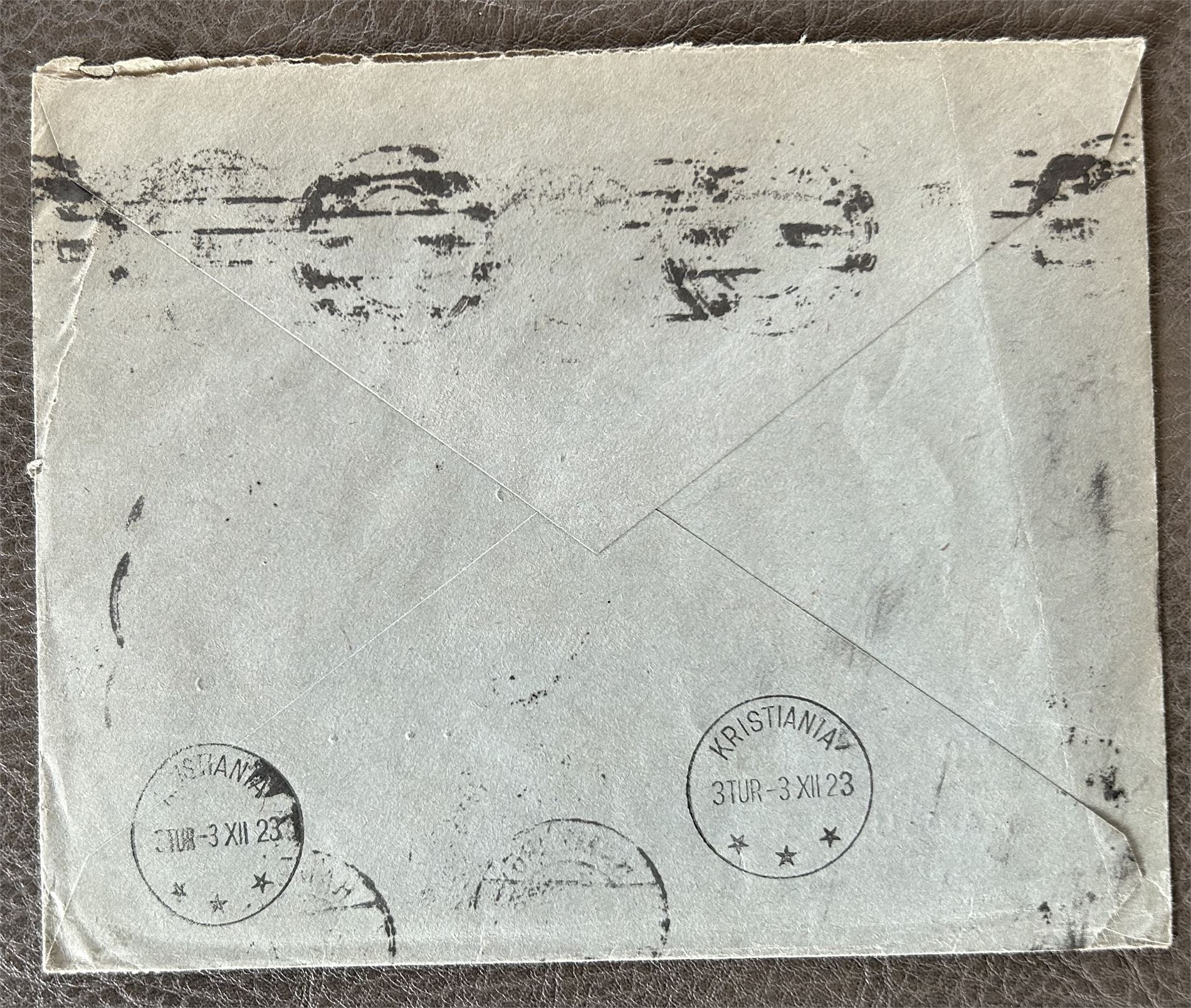 REICH-INFLASJONSBREV Brev til Kristiania med porto 380 milliarder Mark stemplet "HAMBURG 1.12.23". 2 avrevne merker. Siste portoperiode, muligens bare denne ene dagen! (5618518)