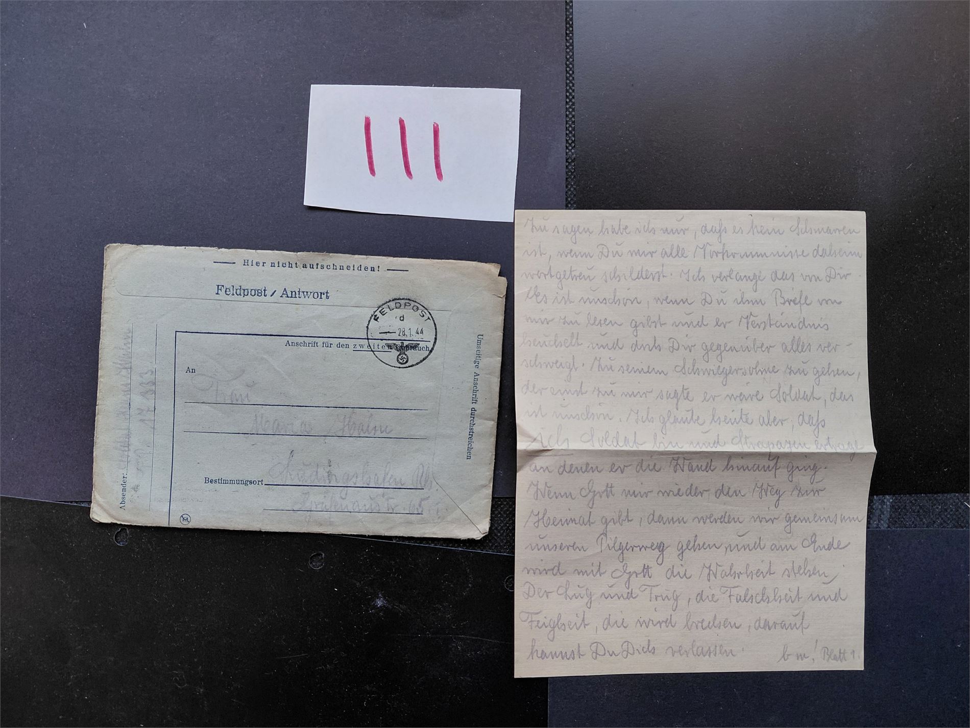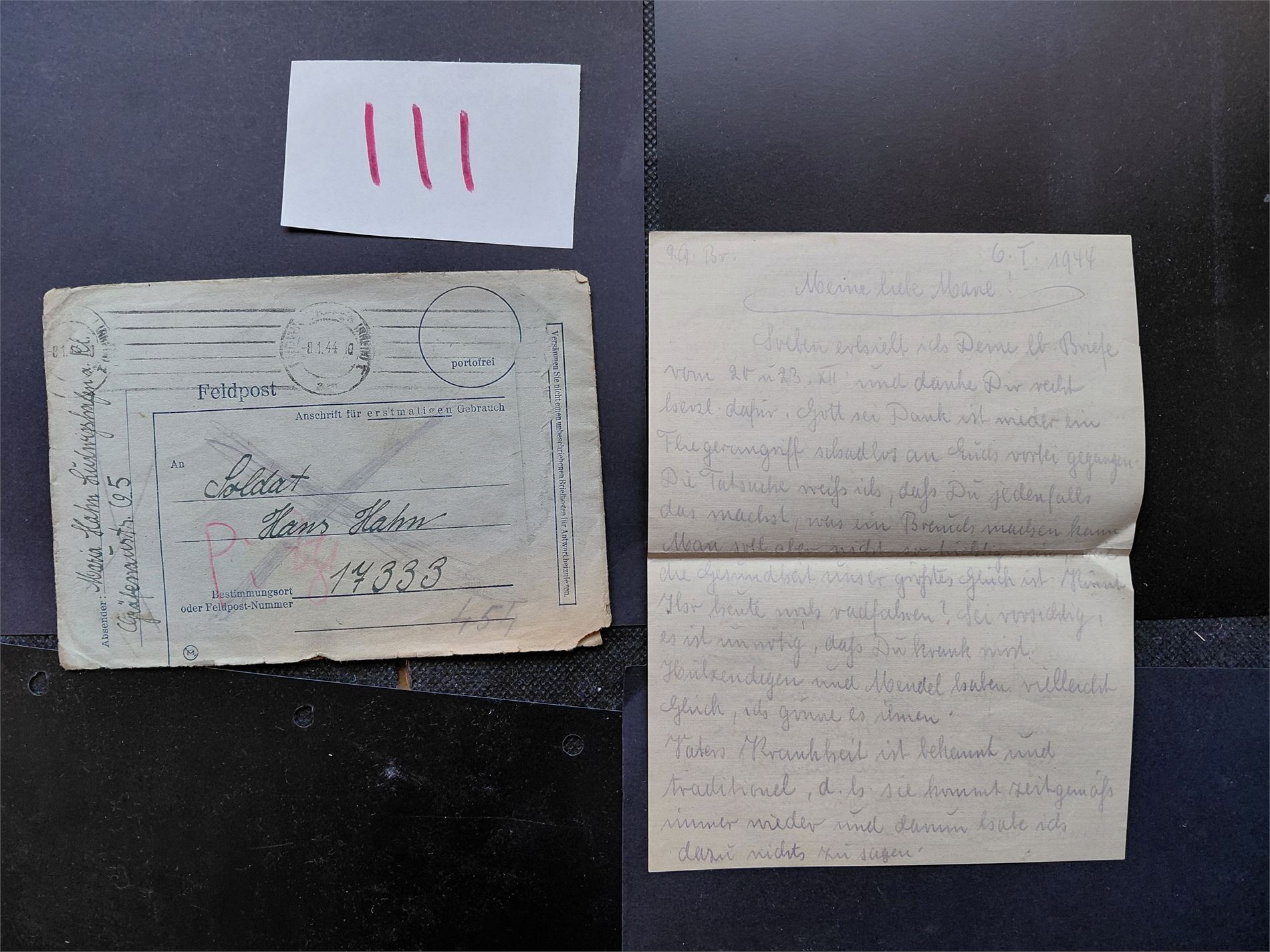 TYSK FELTPOST Brev med innhold fra januar 1944. Bilde av begge sider