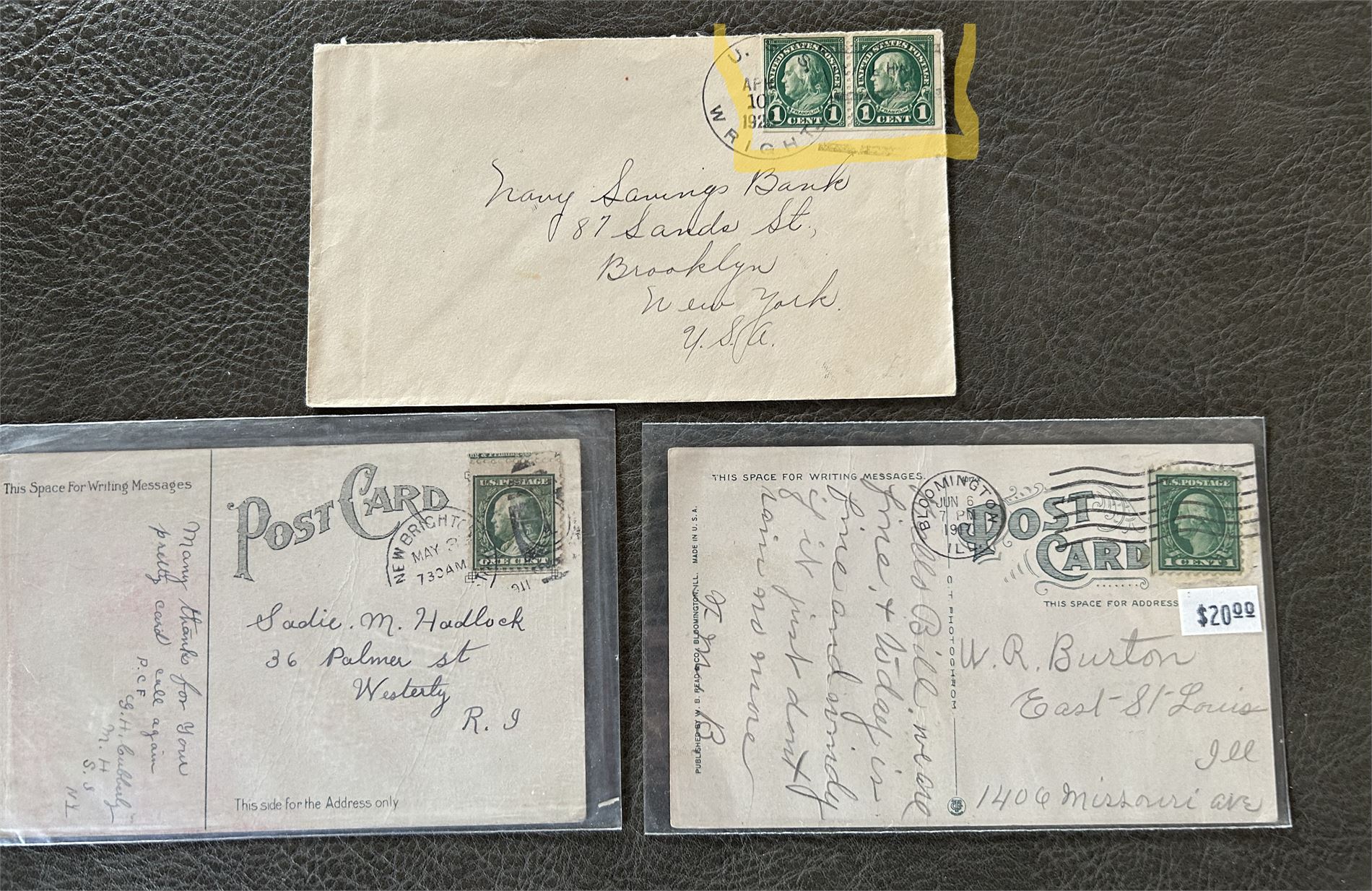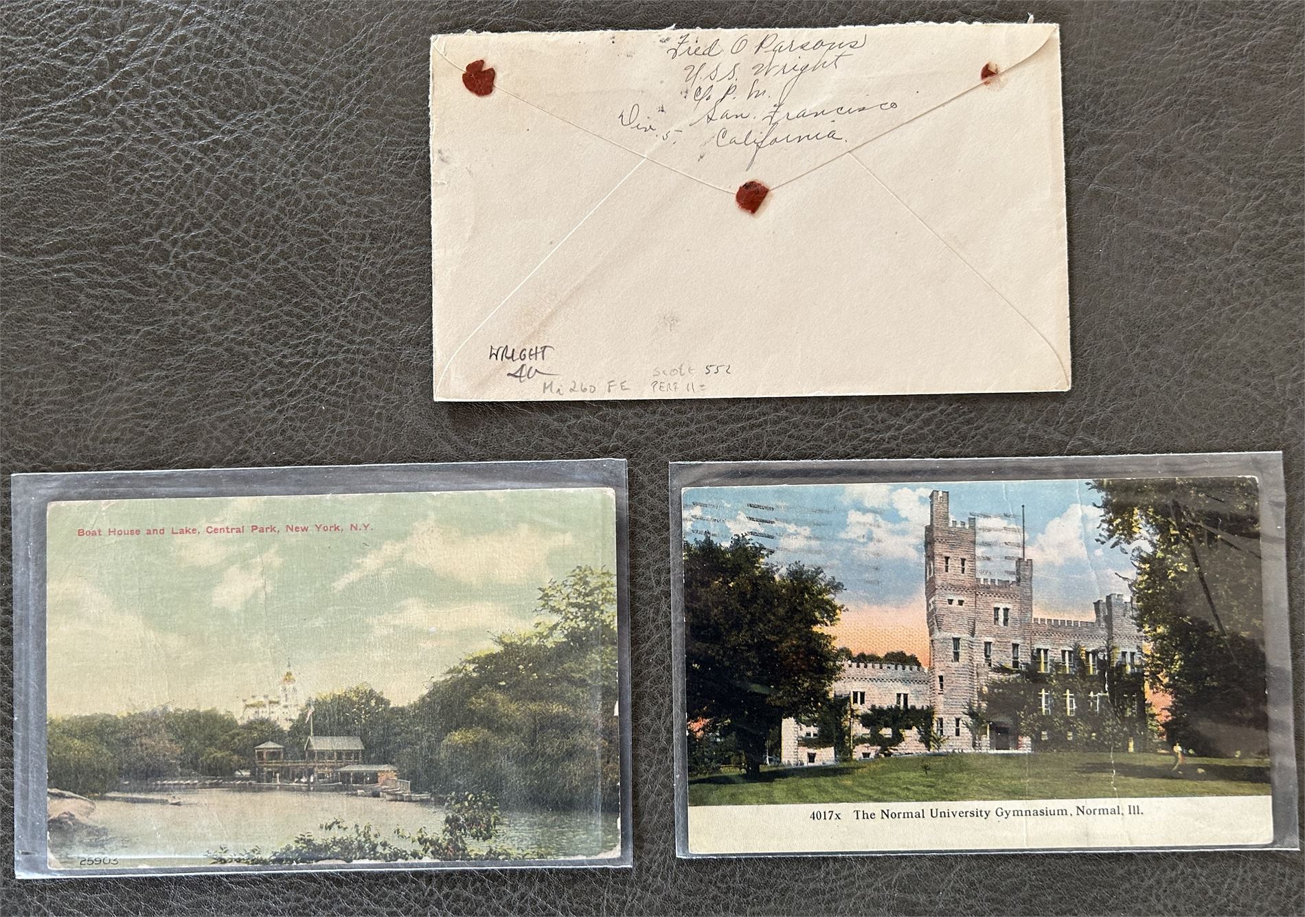 USA-BREV/KORT Brev stemplet "USS WRIGHT APR 10 1923" + 2 postkort stemplet 1911 og 1917