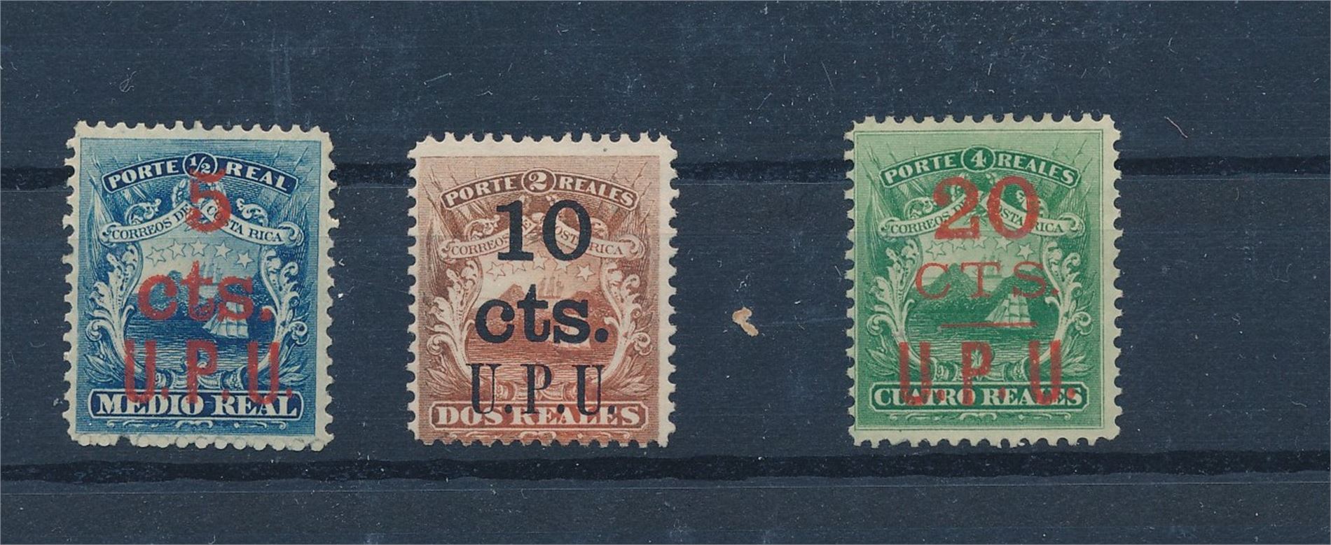 COSTA RICA x/(x) Mi I-III 1862 ikke utgitt serie med overtrykk. I er hengslet, de andre uten lim (€ 520 for x)