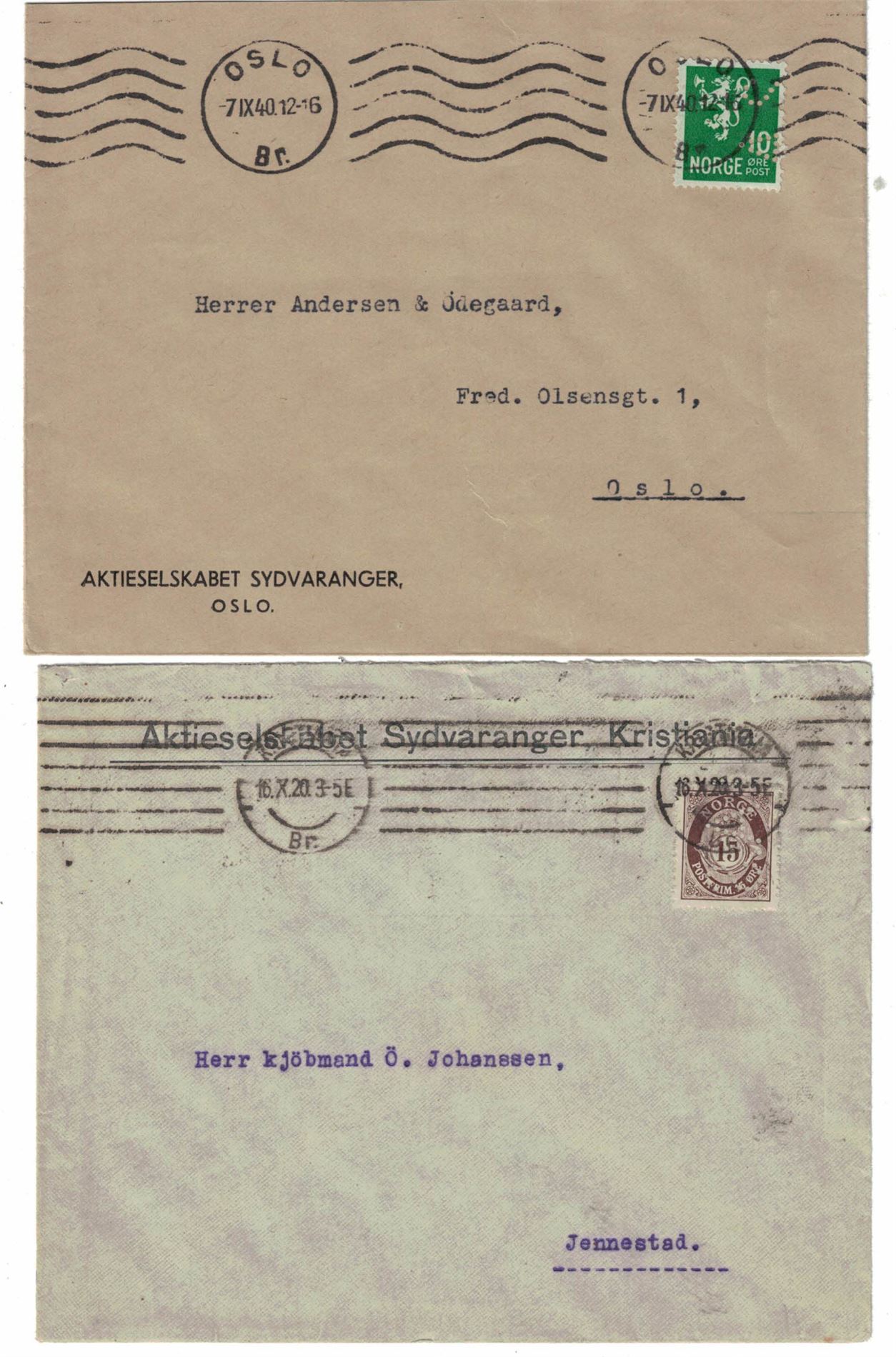 PERFINS A.S Lot 9 merker (Nk 99. 100, 141 og 145) med forskjellige stillinger + 2 pene brev