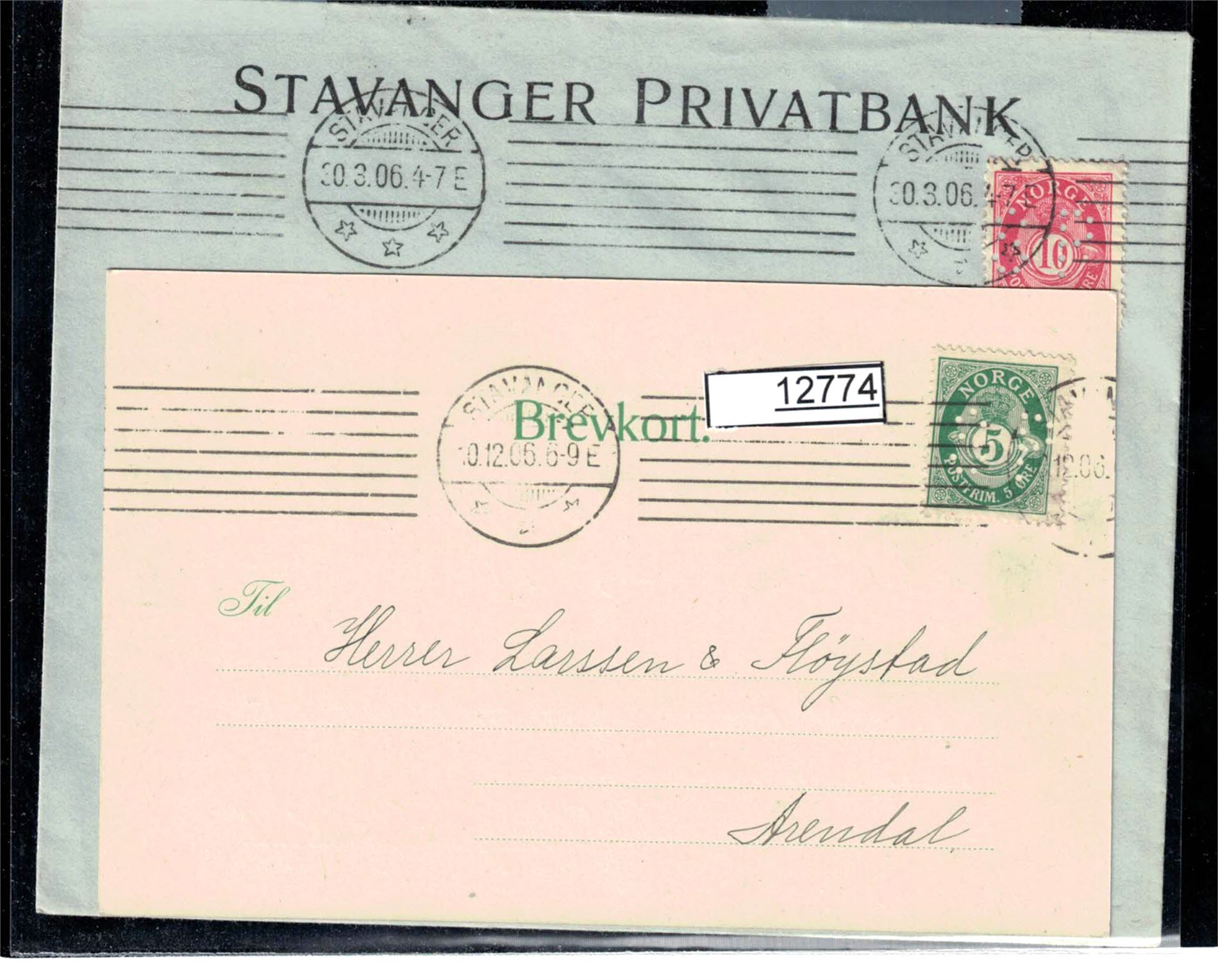 PERFINS S P 2 sendinger med Nk 76 og 77II, begge med avsenderlogo