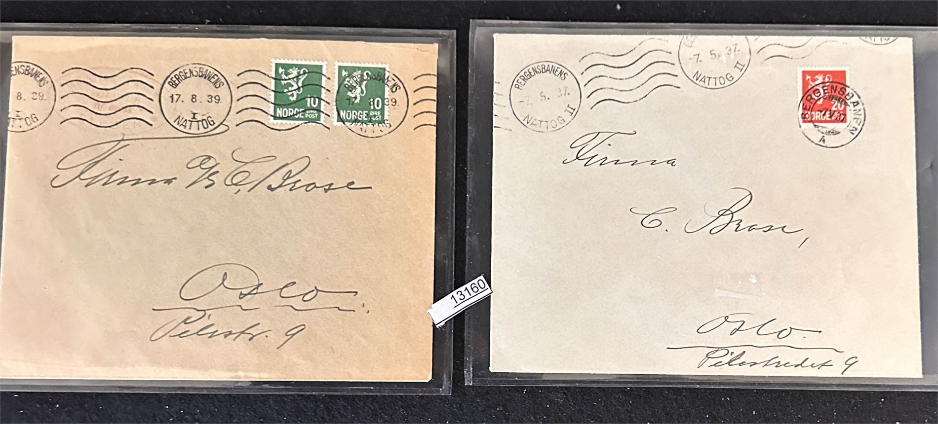 JERNBANE 2 brev med ulike stempler "BERGENSBANENS NATTOG"