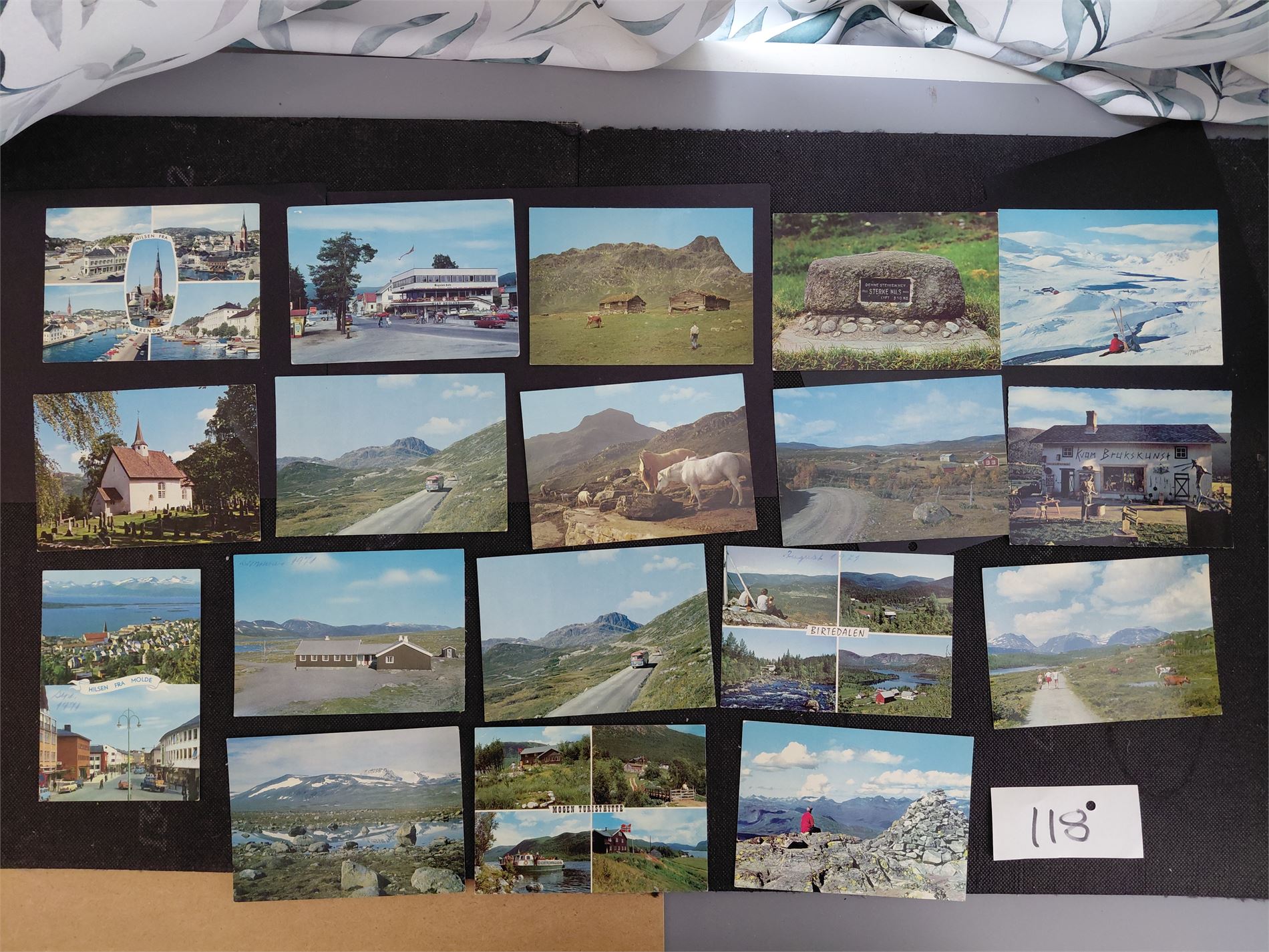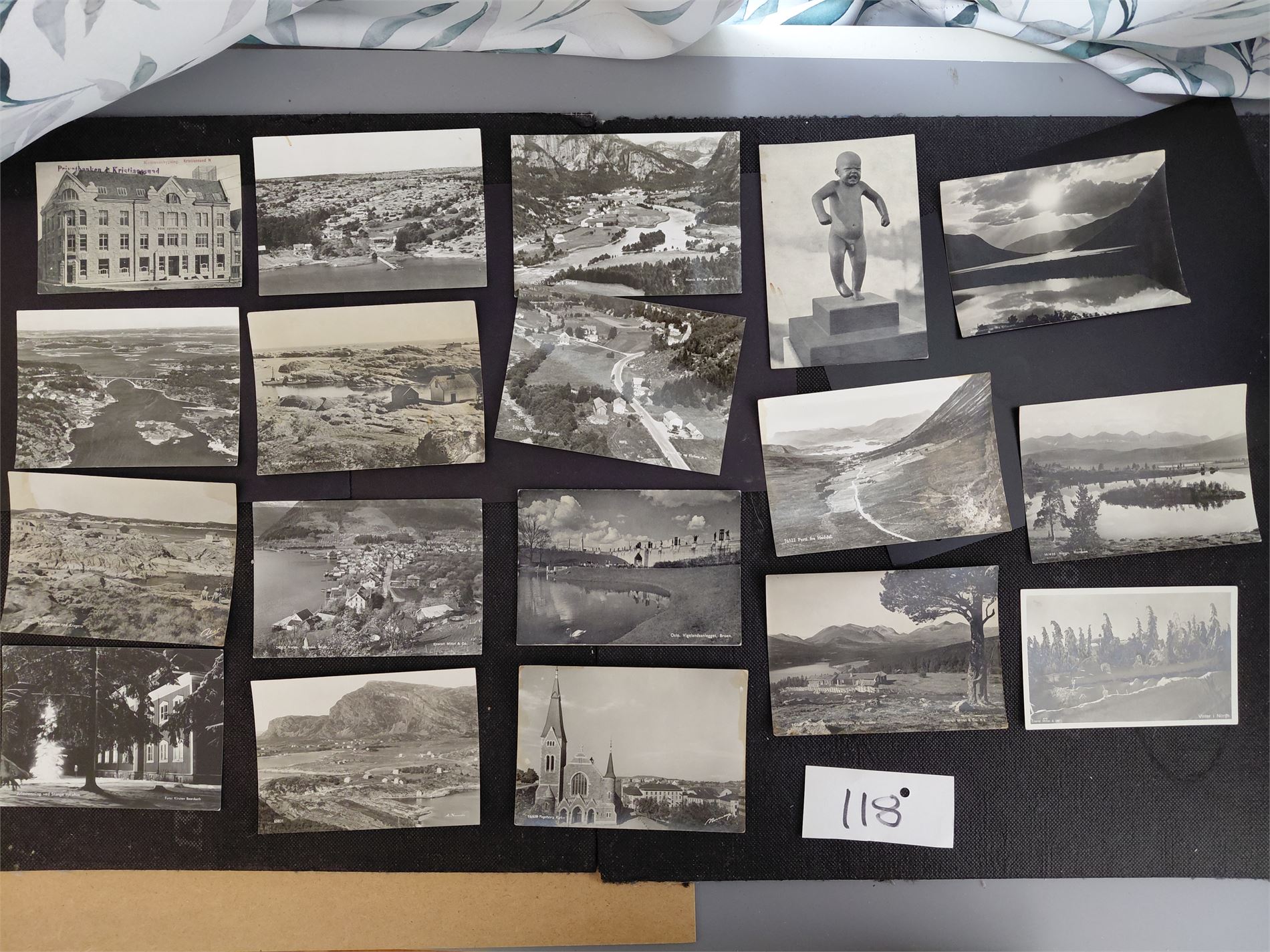 Lot kort, de fleste storformat. Noen av svart/hvitt-kortene er misfarget