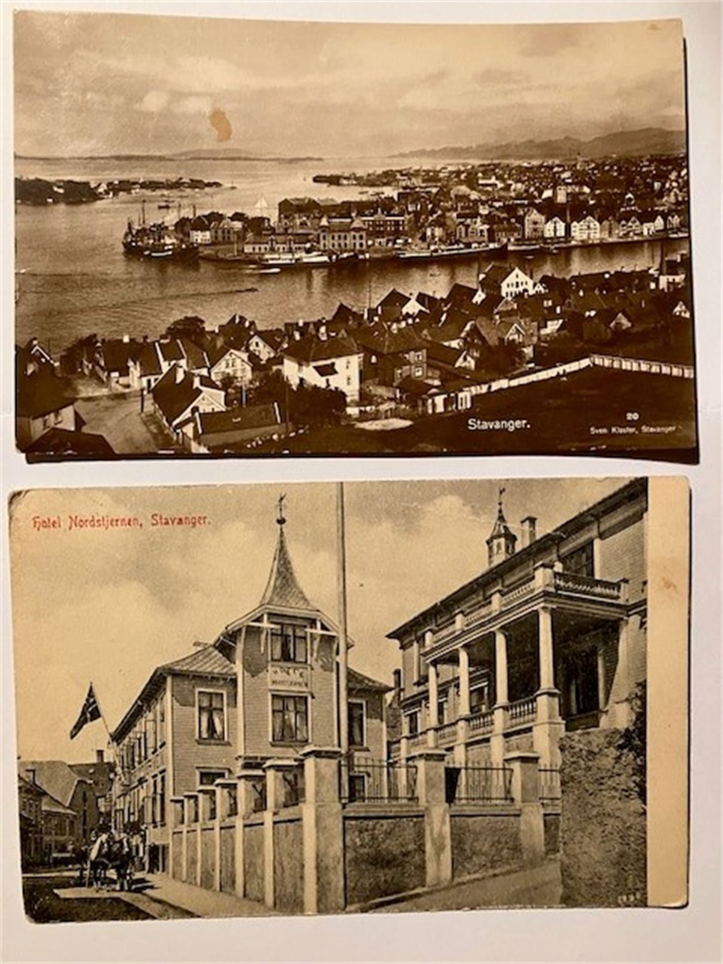 Hotellkort utgitt av N.K. brukt i 1919 ikke sendt, det andre utgiver Sven Kloster og brukt på 40-tallet
