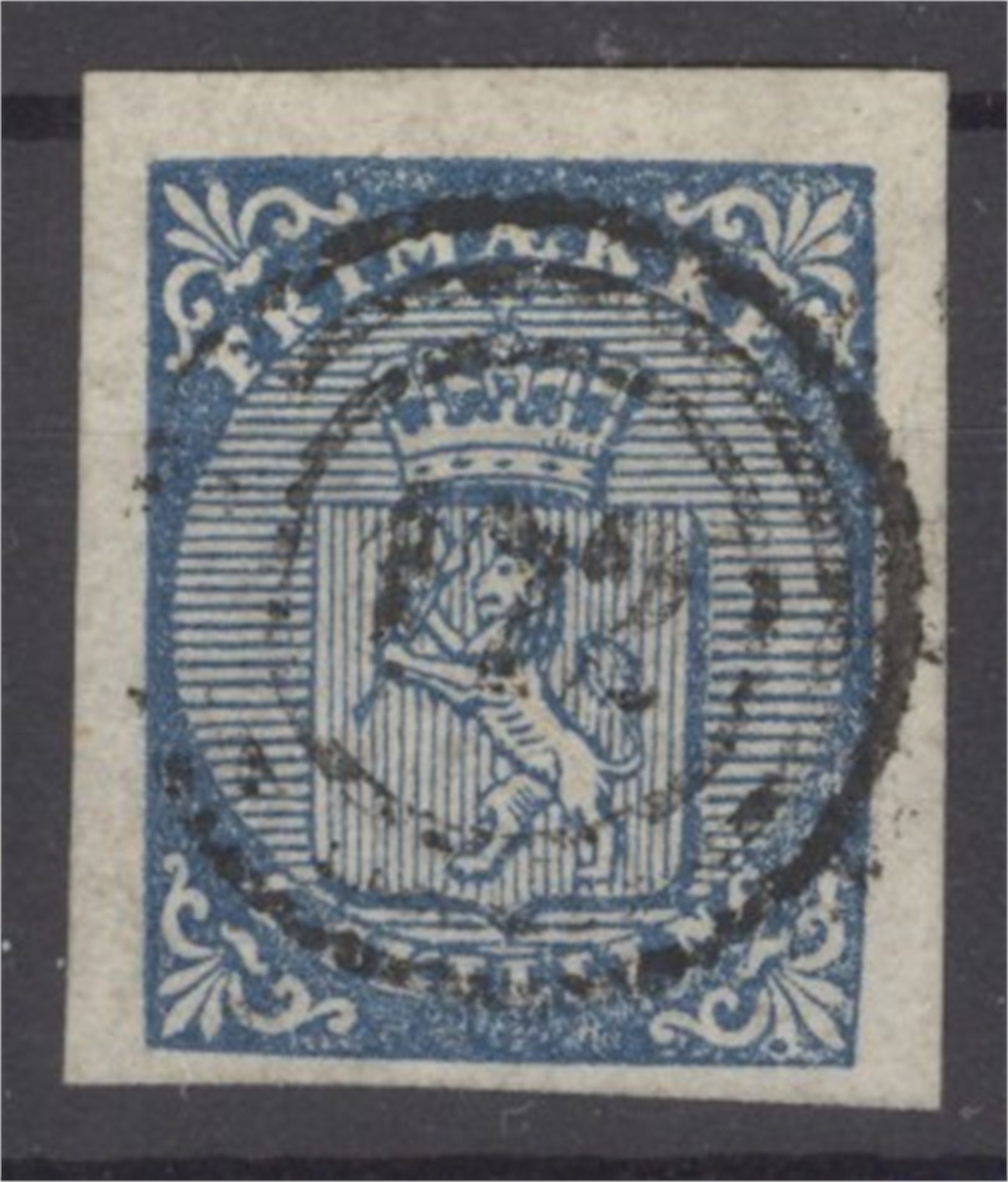 NK 1 stemplet sentrert med 3-rings , 3 brede marger, en normal
