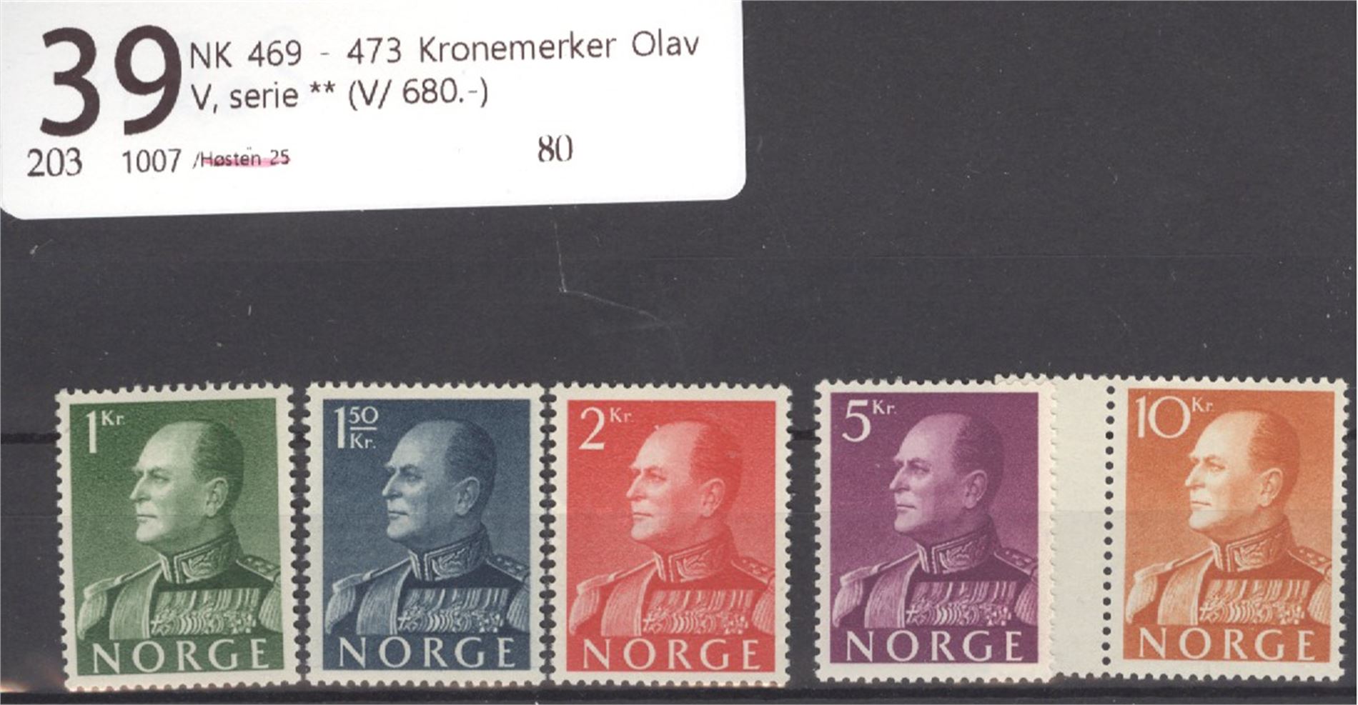 NK 469 - 473 Kronemerker Olav V, serie ** (V/ 680.-)
