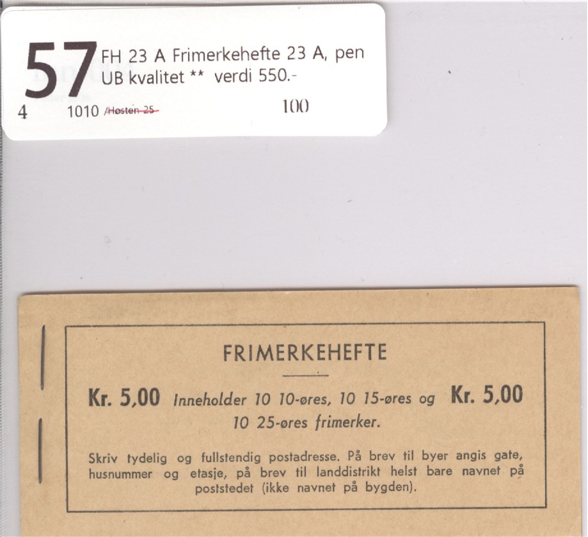 FH 23 A Frimerkehefte 23 A, pen UB kvalitet ** verdi 550.-