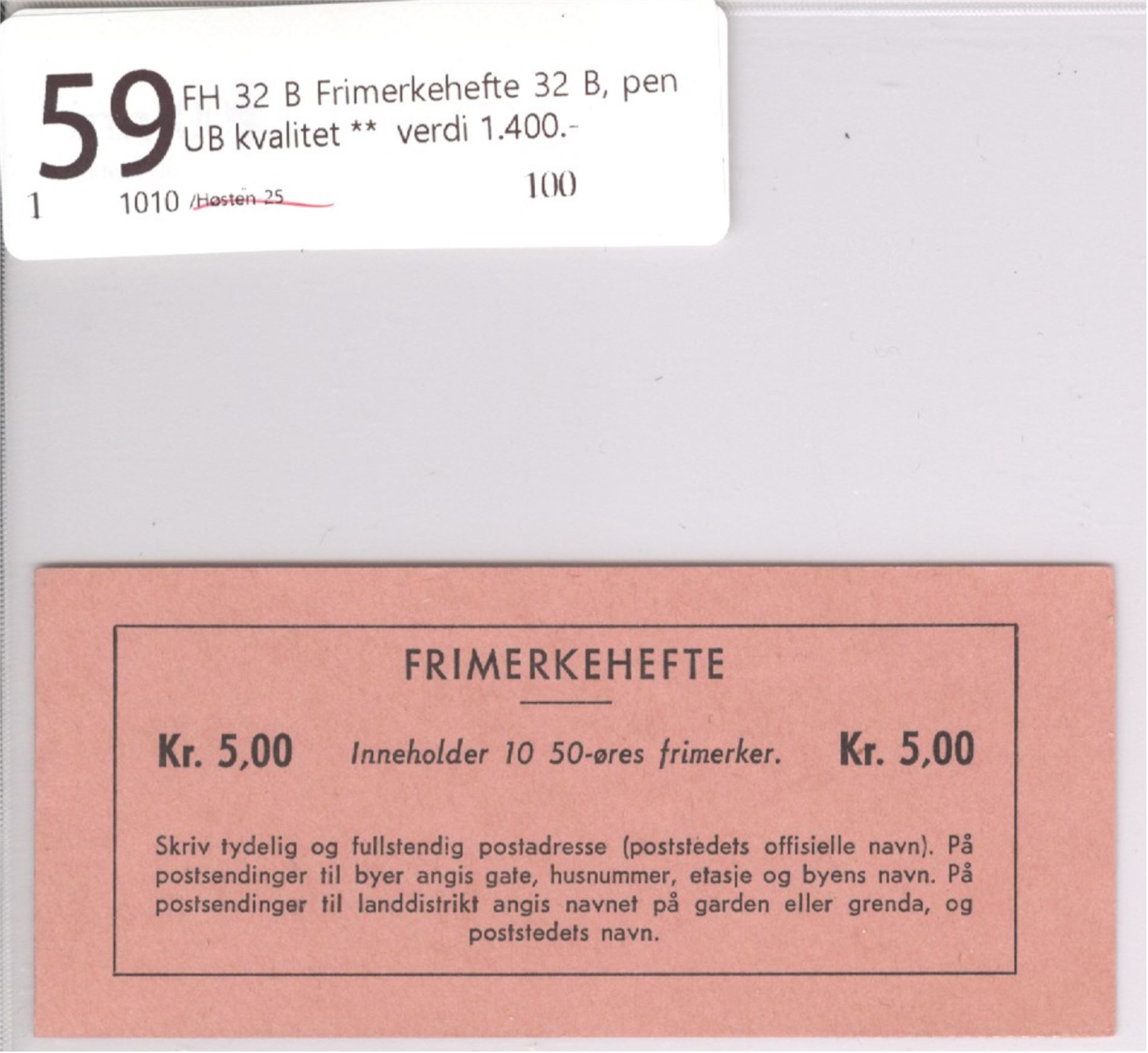 FH 32 B Frimerkehefte 32 B, pen UB kvalitet ** verdi 1.400.-