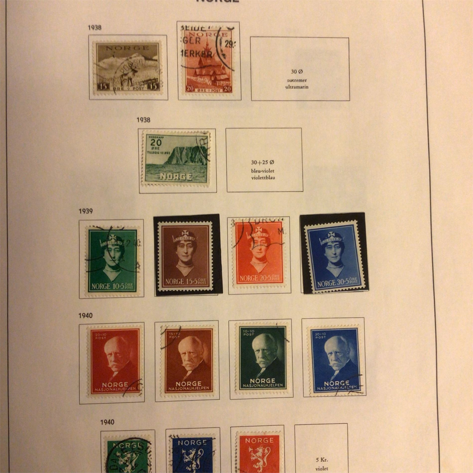 Norge Davoalbum Norge starter med 5 skillingsmerker. Greit besatt st/'/**