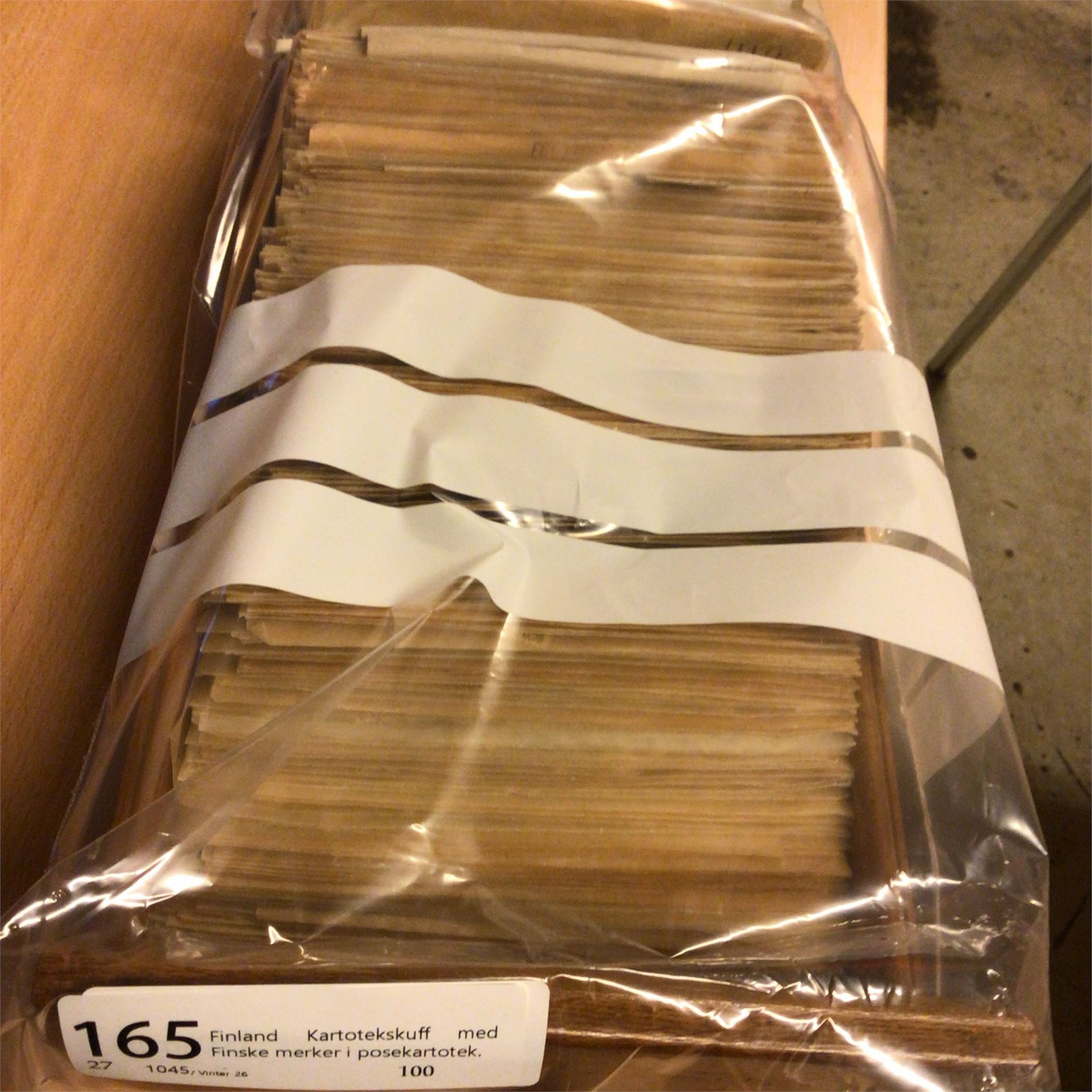 Finland Kartotekskuff med Finske merker i posekartotek.