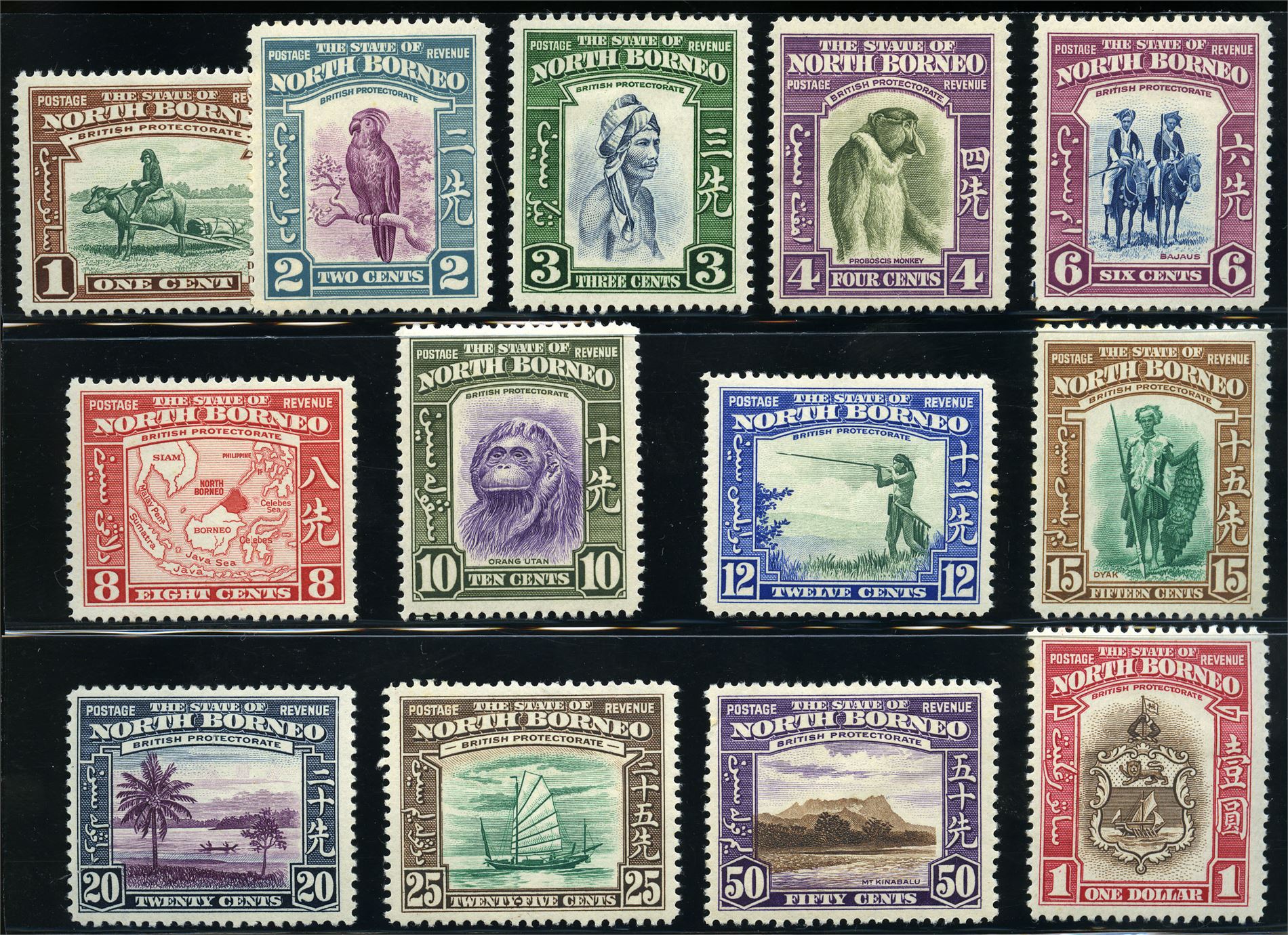 Br. Kolonier NORTH BORNEO 303-15. The 1939 set to 1 $ */** (£ 390 as ** )