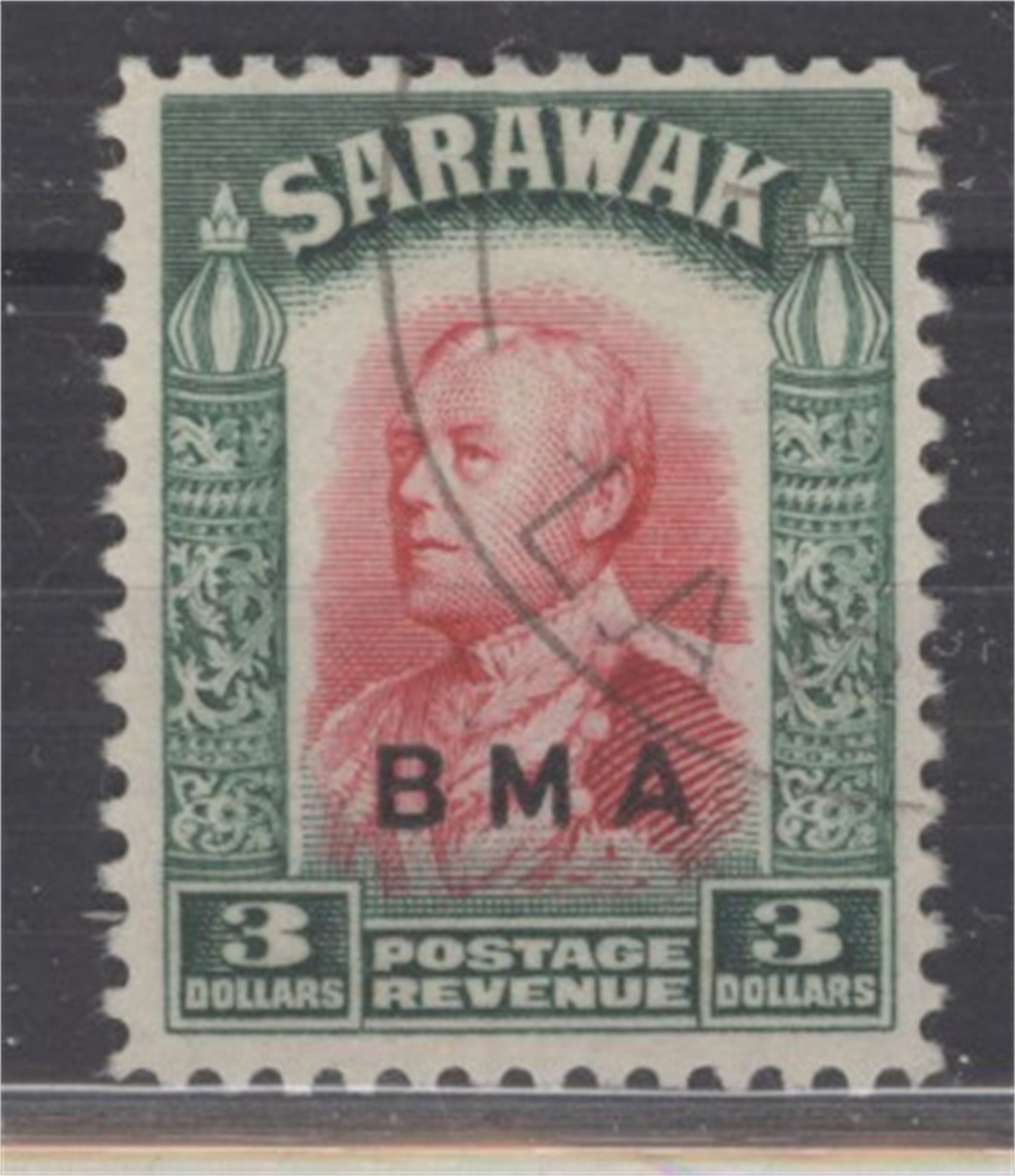 Br. Kolonier SARAWAK 142. $3 "BMA", light cancel, fine item! (£100)