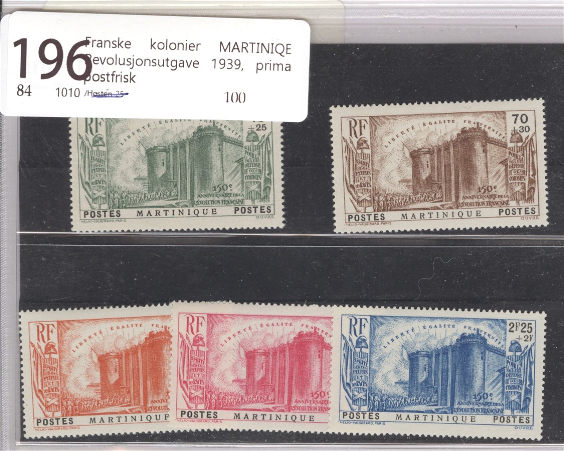 Franske kolonier MARTINIQE Revolusjonsutgave 1939, prima postfrisk