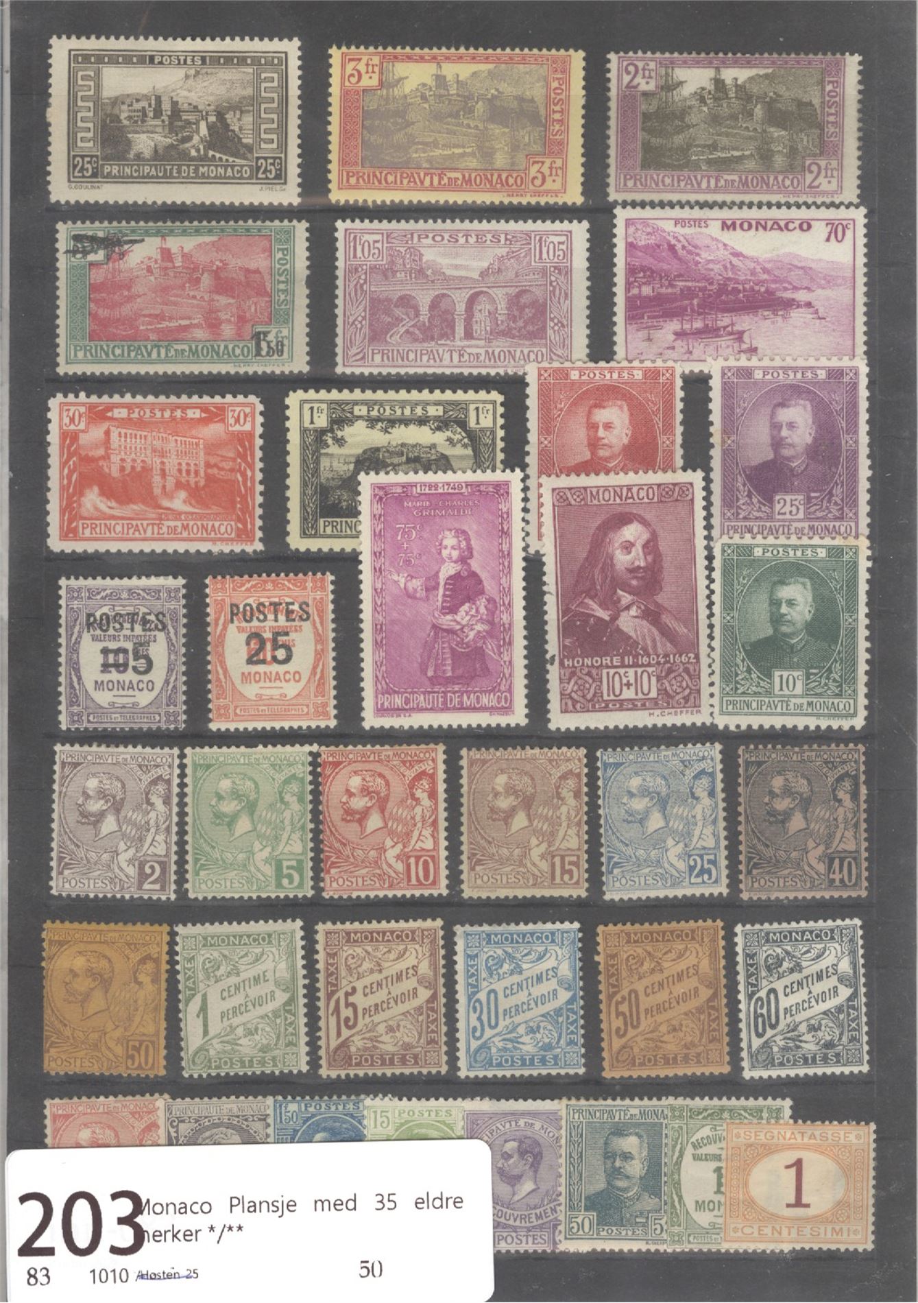 Monaco Plansje med 35 eldre merker */**
