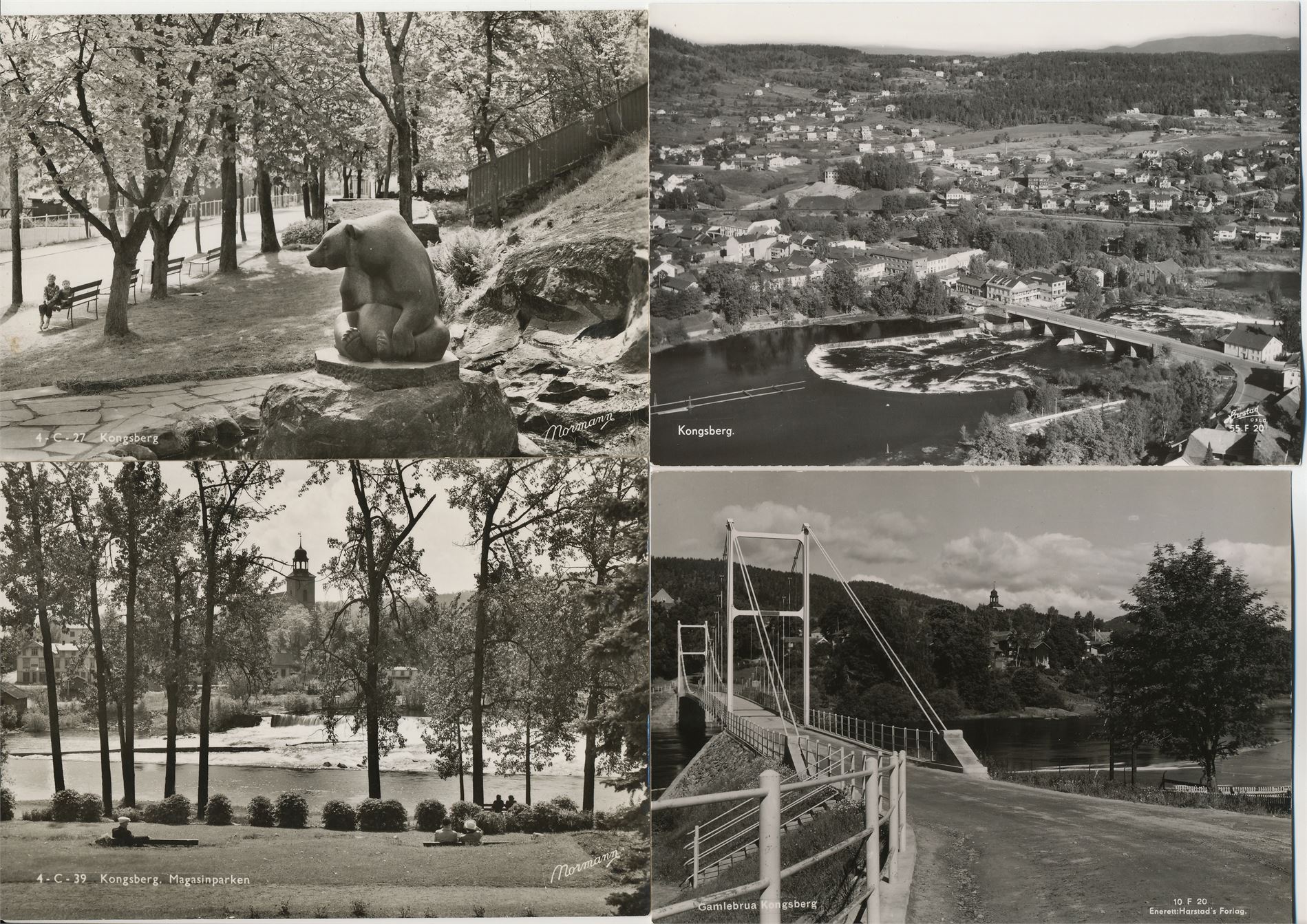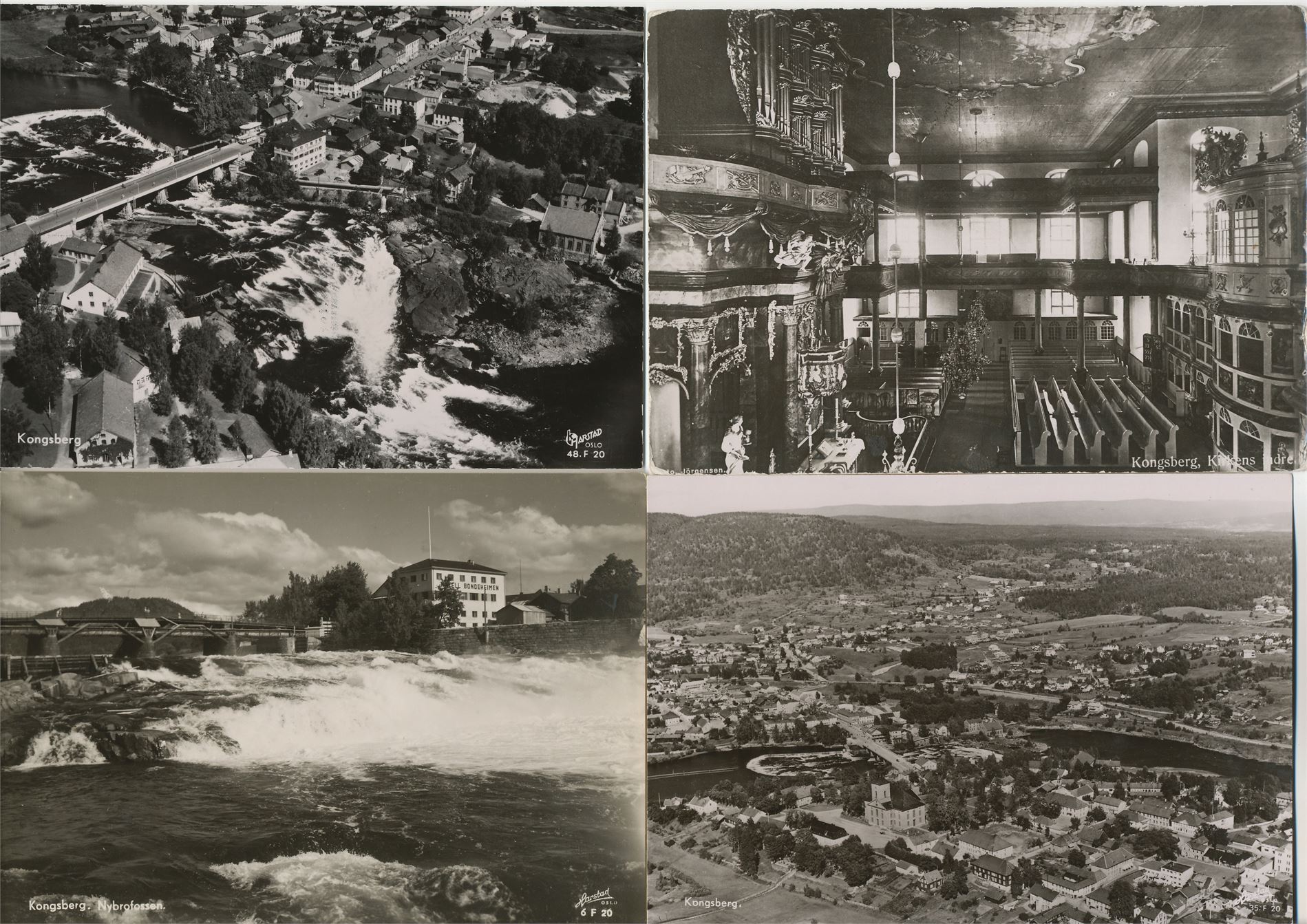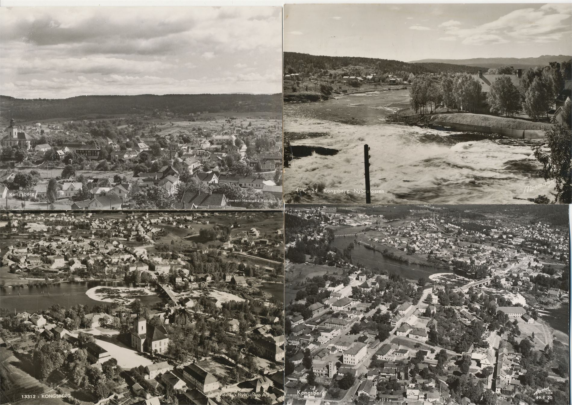 Kongsberg lot 1, 12 stk ulike postkort med bymotiver A6 s/h