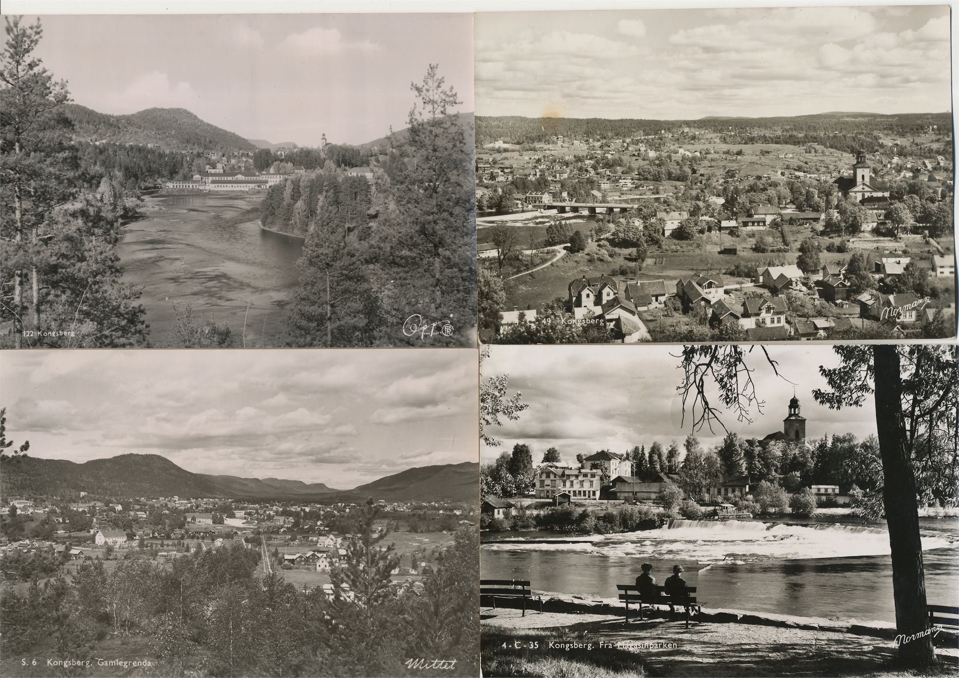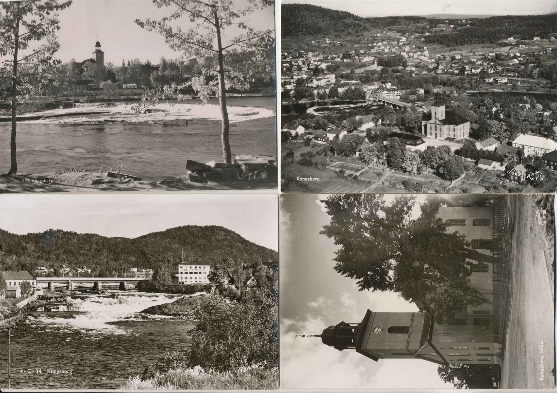 Kongsberg lot 2, 12 stk ulike postkort med bymotiver A6 s/h