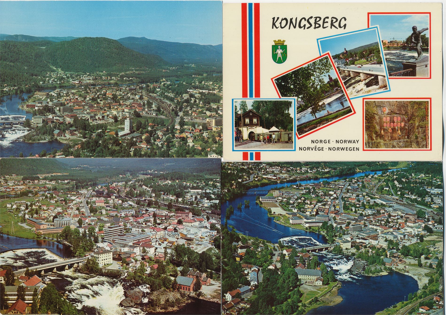 Kongsberg lot 4, 15 stk ulike postkort med bymotiver A6 farge